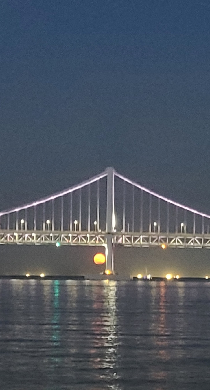 지금껏 시흥에서 봤던 달은 하얗고 작았다. 때문에 달이 아닐 거라고 편협한생각을 했다. 열기구라고 생각했던 그것은 어느 순간 광안대교 위로 둥실 떠올랐다. 그제야