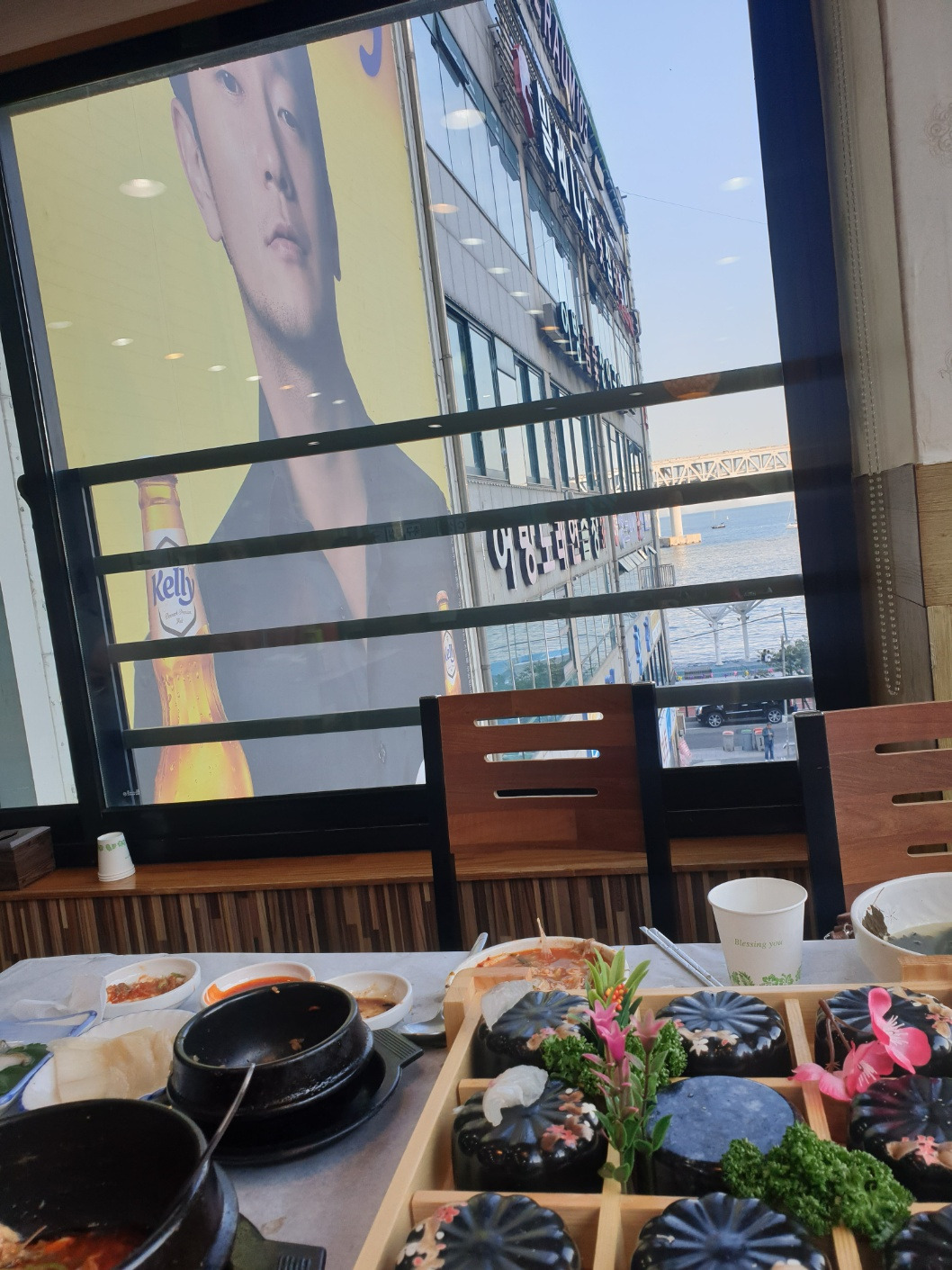 카페에서 나와 광안리의 횟집으로 갔다. 예약 필요 없이 자리는 많았고 인당 육만 원짜리 회를 먹었다. ‘바닷가에 왔으면 회 정도는 먹어줘야지.’하는 허세가 있었는데, 우리에게 회는 정말 맞지 않다는 걸 확실히 깨달았다. 뒷 건물에 걸린 현수막 속 손석구만 좋았다.