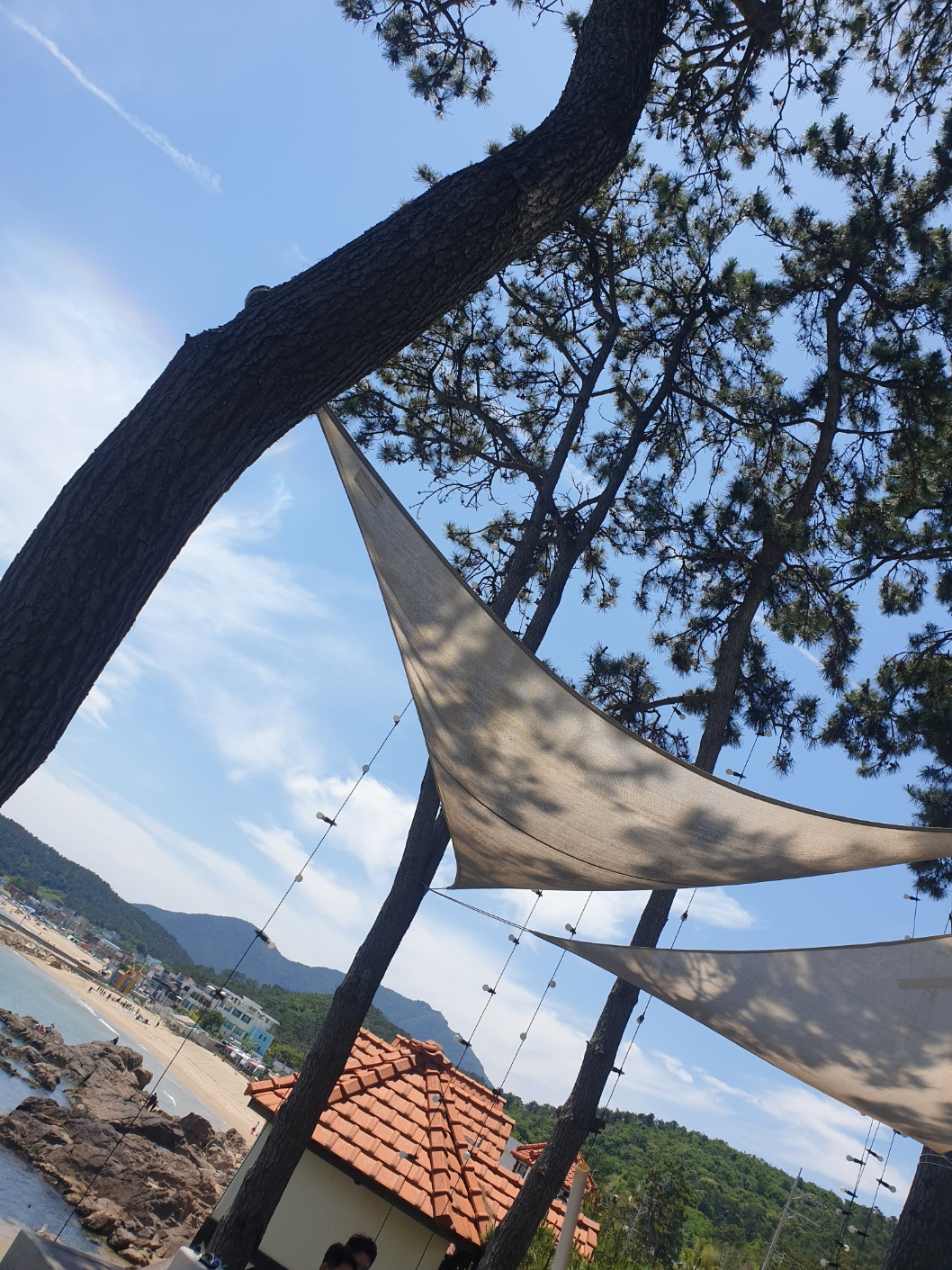 밥을 먹고 기장에 위치한 유명 카페에 갔다. 유럽, 동남아 외국 그 어디를 간다 해도 이렇게 멋스러운 카페는 없을 것이다. 루프탑이 있고, 바다를 접한 널따란 야외에는 계단마다 설치해 놓은 푹신한 매트와 일인용 소파, 벤치가 있어 편안했다. 천장에 그늘막 역할을 하는 발을 쳐놔서 햇빛은 막아주고 바람은 선선한데, 그 앞에 펼쳐지는 바다 풍경이 기가 막혔다.