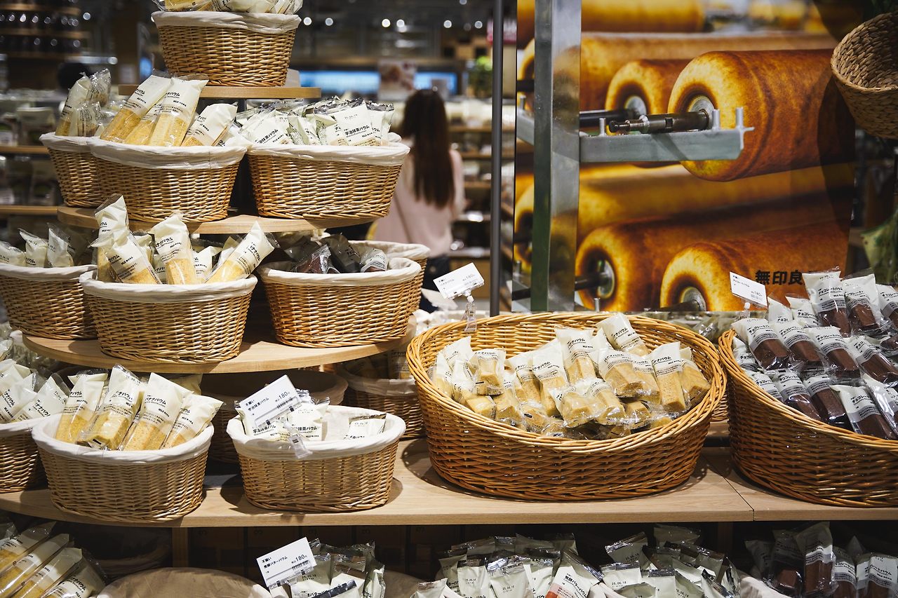 무인양품에서는 자체 제작 물품에 더해 그 지역의 특산물을 판매하기도 한다.