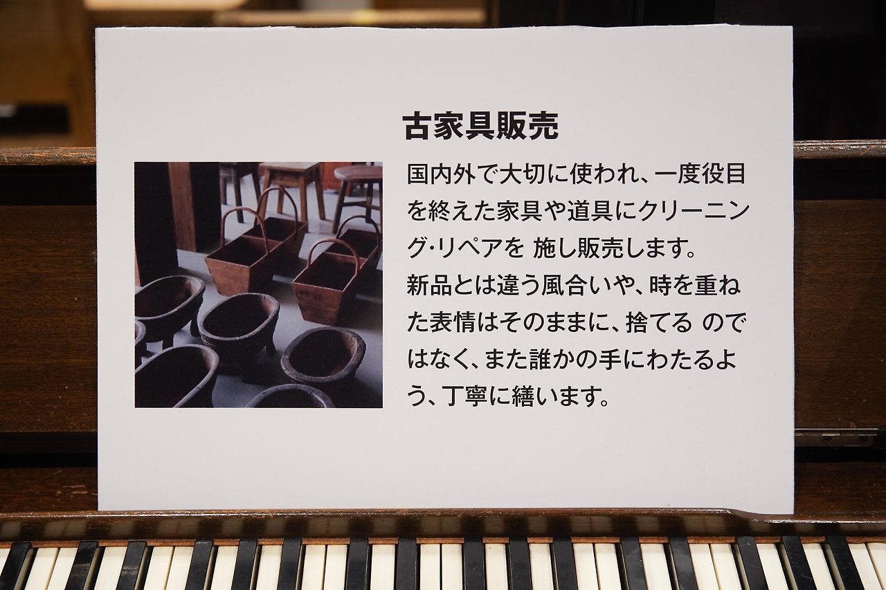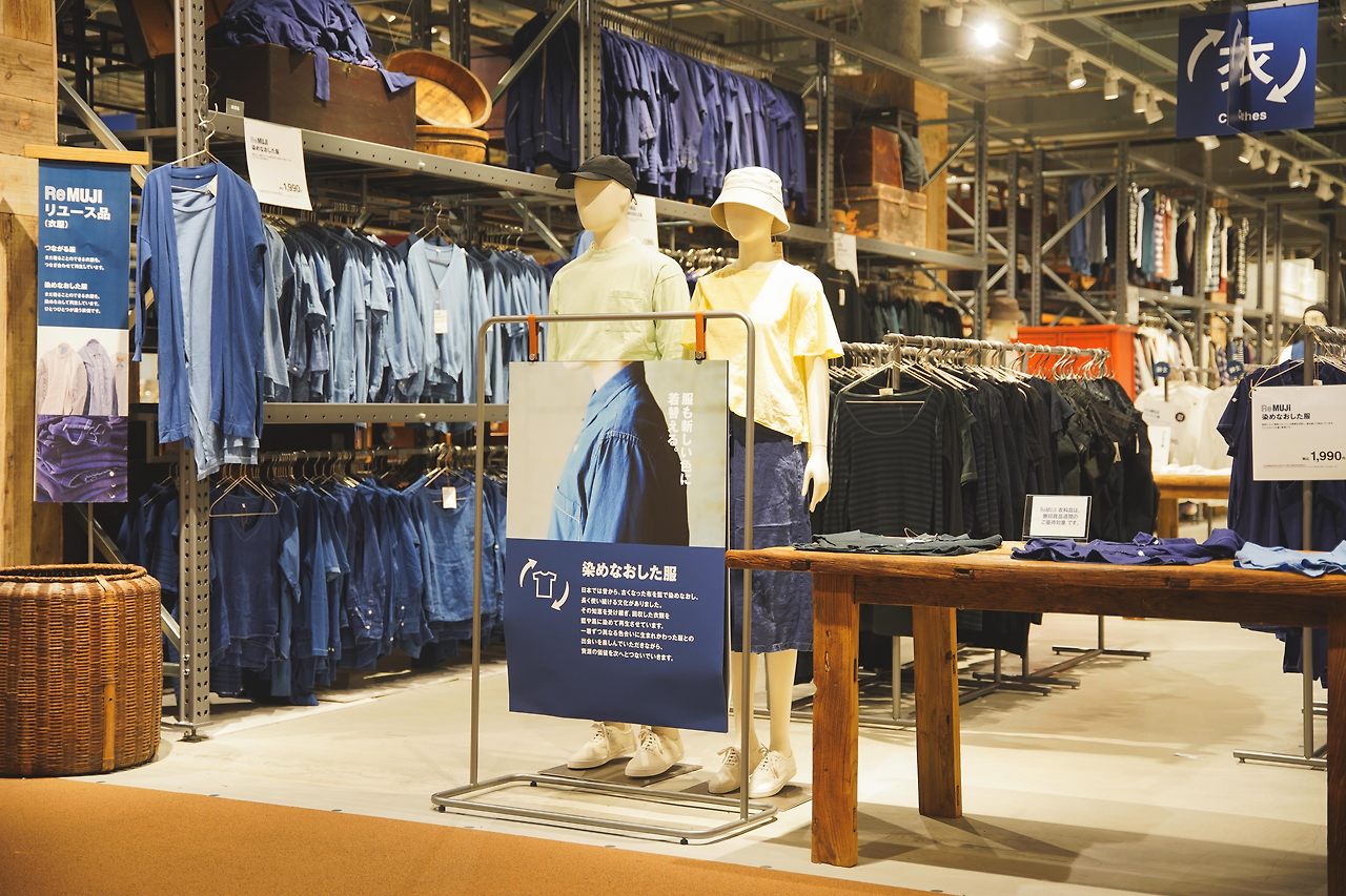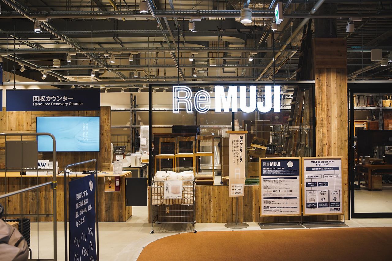 'ReMUJI'는 고객들이 사용하던 제품을 재수선해 판매한다. 대표적으로는 옷이지만 고가구와 식기를 포함한 생활용품까지 다양한 종류의 제품들을 취급한다.