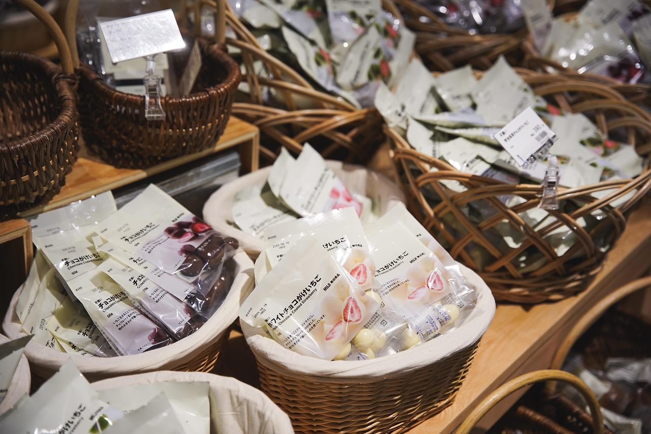 무인양품의 대표적인 간식인 초콜릿 코팅이 된 건딸기.