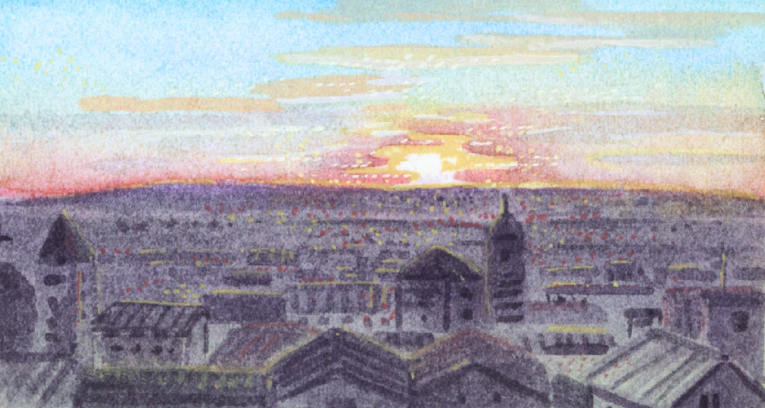 시선 끝 저 먼 시에라네바다 산맥 위에 태양이 내려앉으면 낮 내내 따갑게 빛을 내뿜던 태양이 비로소 잠잠해져 모습을 허락합니다. 지평선에 가까워진 태양은 새삼스럽게 커다랗고, 둥글게 보였어요. 그 선명한 붉음은 어떤 색으로 표현해야 할까요? 하루는 마음을 먹고 재료를 챙겨가 그 석양을 그렸지만, 꼭 맞는 색을 찾기가 퍽 어려웠습니다. 그 그림이 편지의 가장 첫 부분에 있던 'San cristobal sketch (2018)'이에요. 그 그림은 지금 오랜 친구에게 전해졌어요.