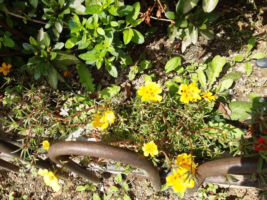 위 사진에서처럼 채송화와 모양이나 생태가 비슷하면서 8∼9월 경 노랗고 작은 꽃이 피는 쇠비름이라는 식물이 있습니다. 이 쇠비름은 잡초로 취급될 만큼 번식력이 아주 강한 식물입니다.