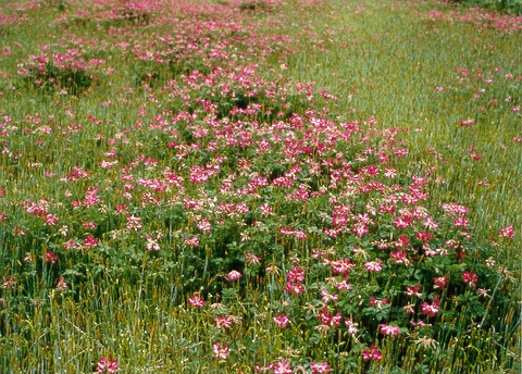 꽃은 4∼5월에 피고 길이 10∼20cm의 꽃줄기 끝에 7∼10개가 산형(傘形)으로 달리며 홍색 빛을 띤 자주색이다. 꽃받침은 흰색 털이 드문드문 있으며 5개의 톱니가 있고 수술은 10개 중 9개가 서로 달라붙으며 씨방은 가늘며 길다.