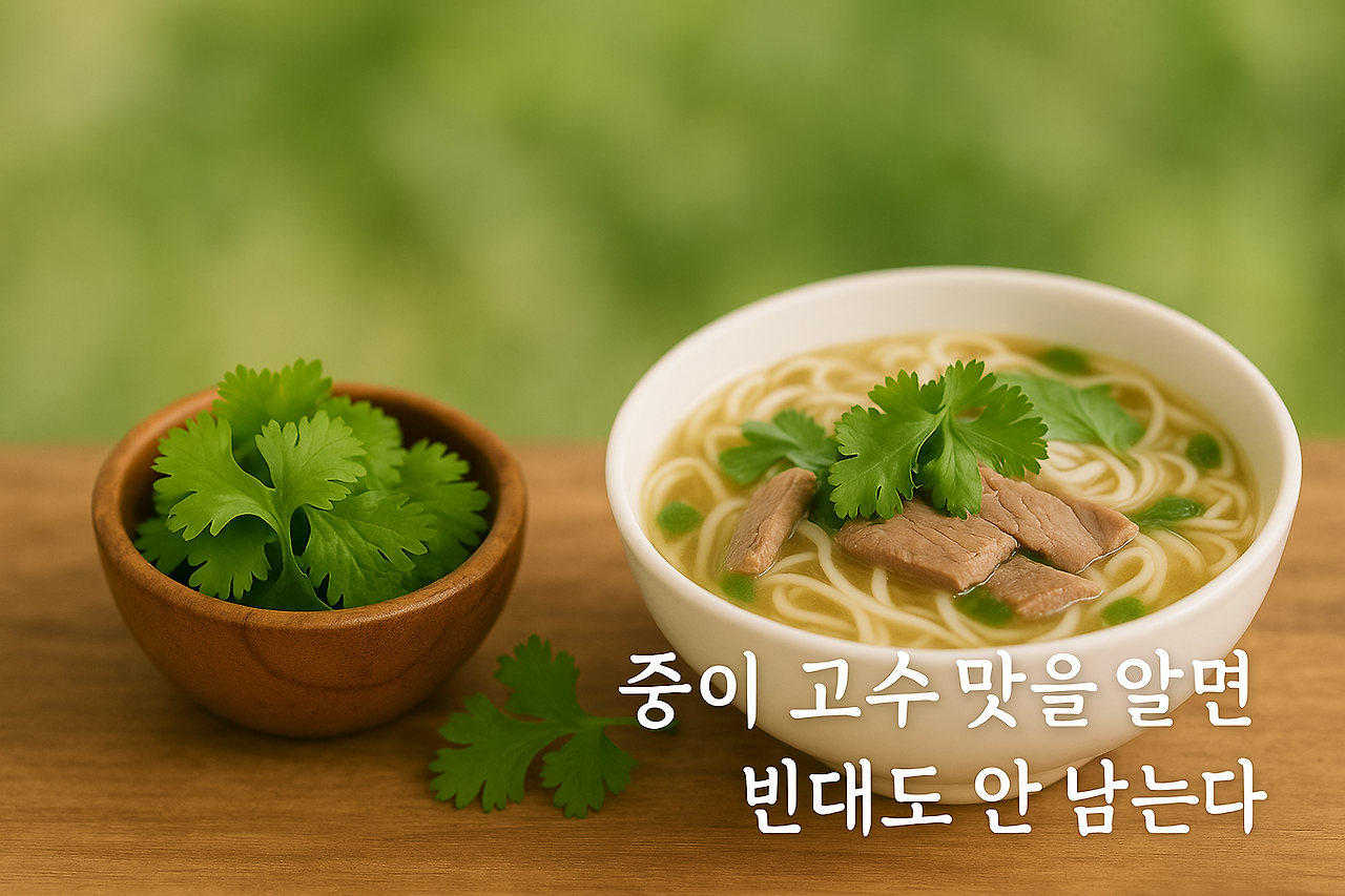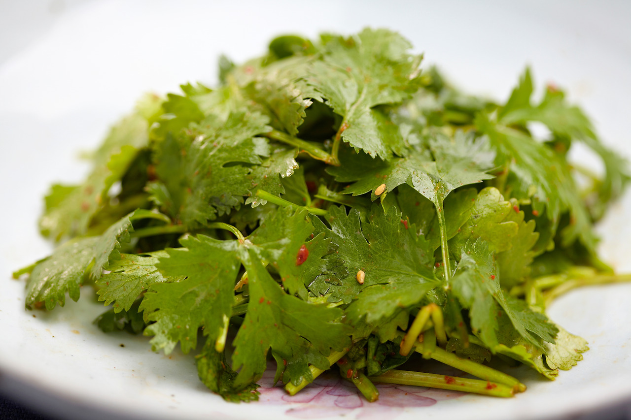 고수 페스토를 만들어 빵에 발라 먹는다.