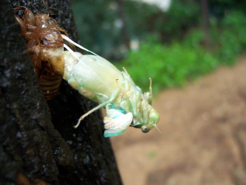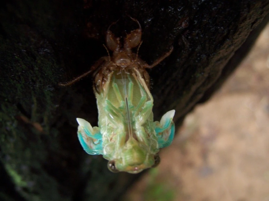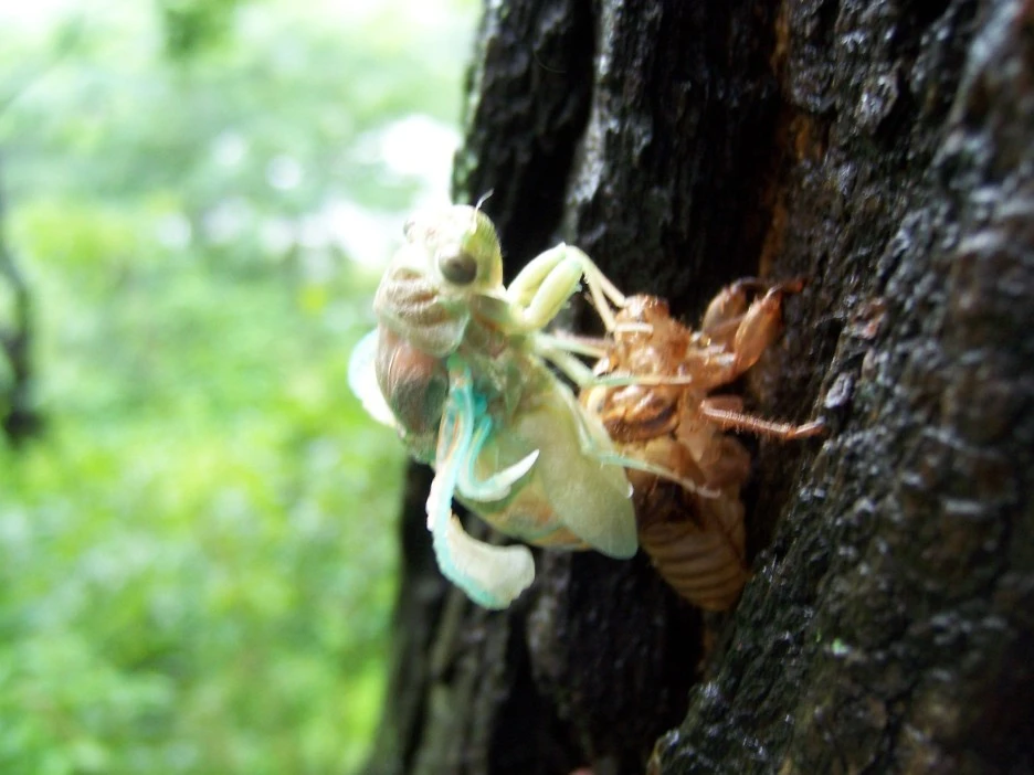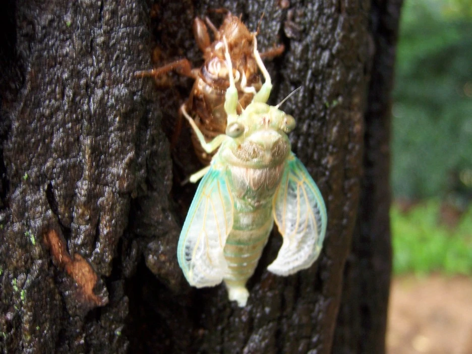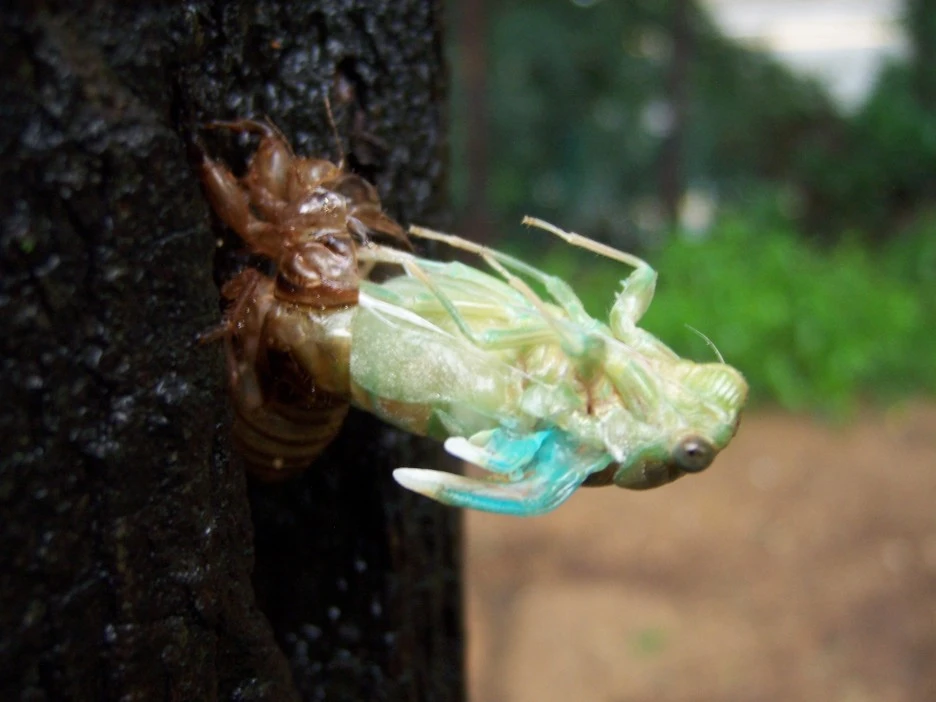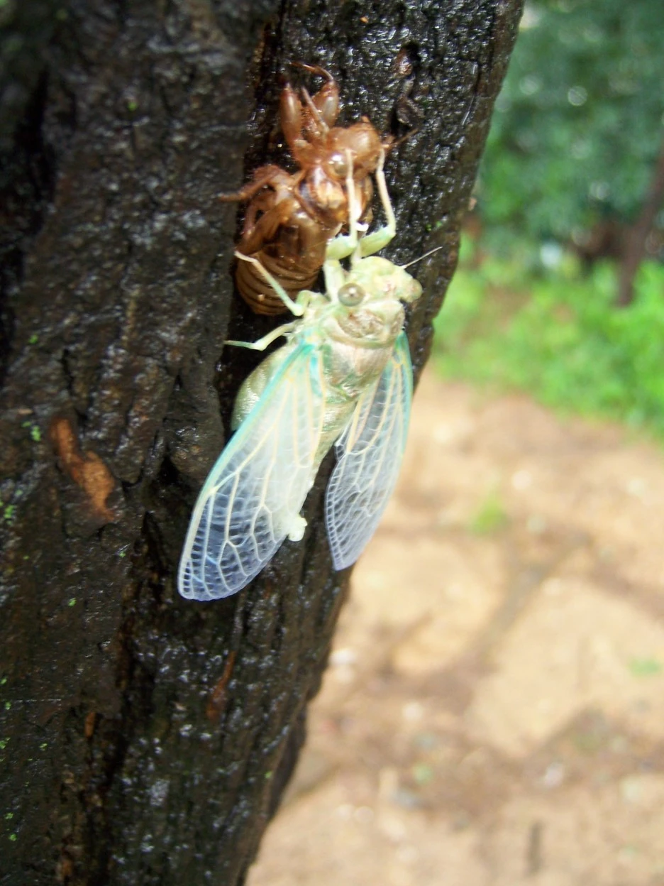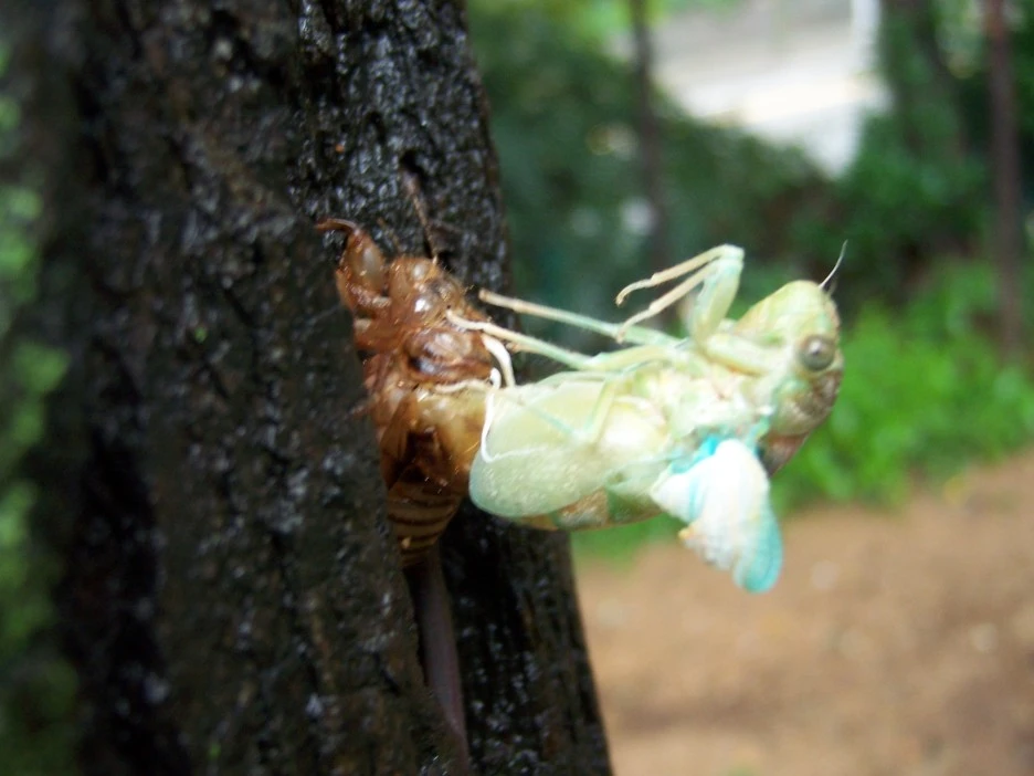매미 껍질과 갓 태어난 매미