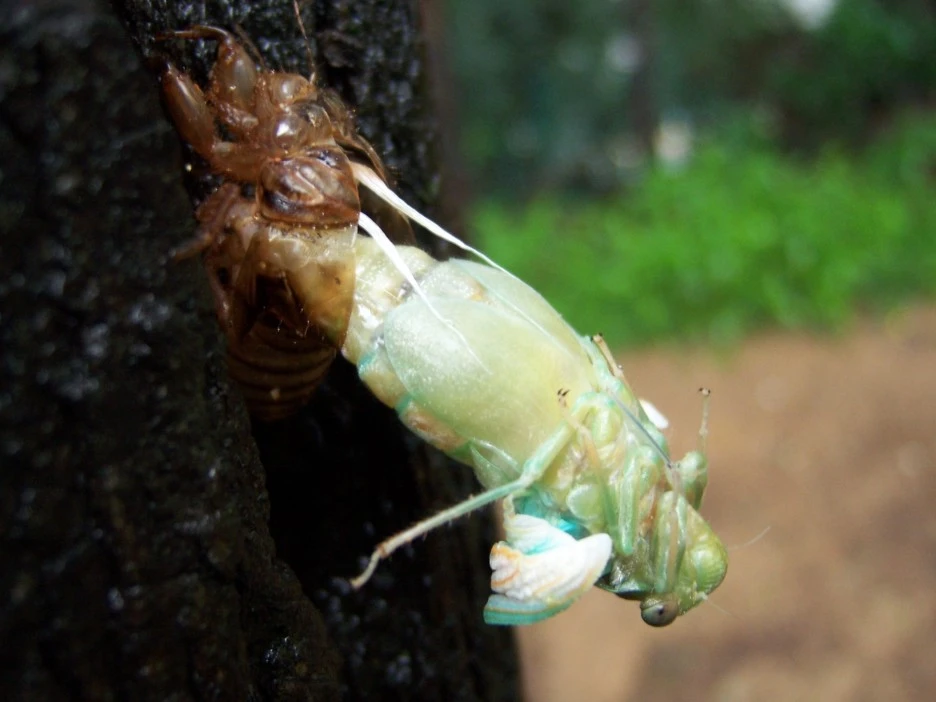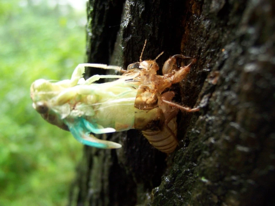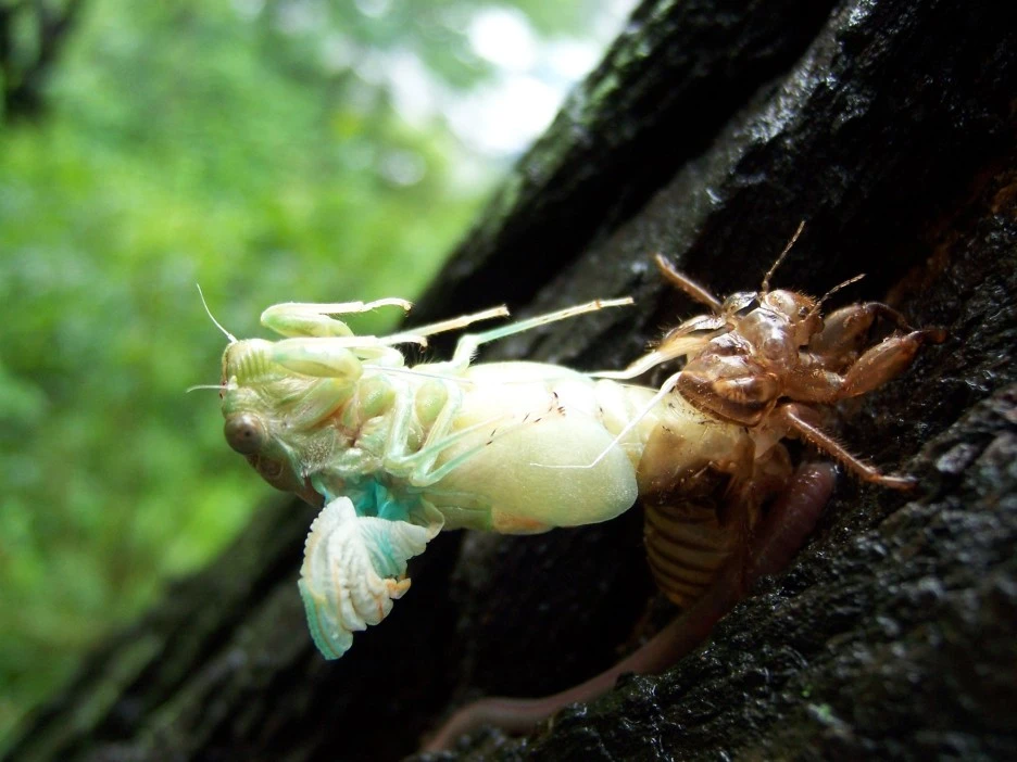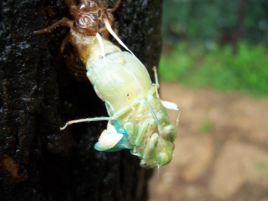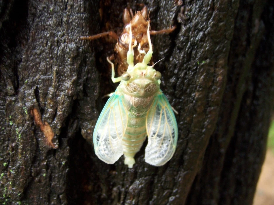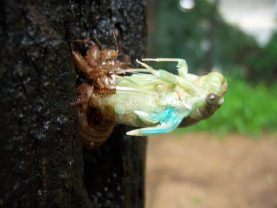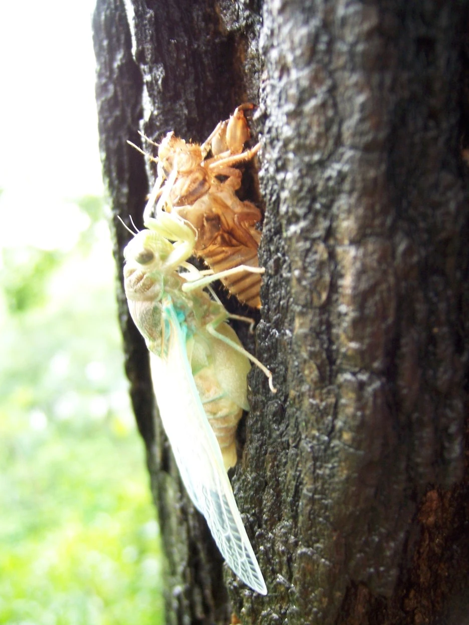 매미 껍질과 갓 태어난 매미