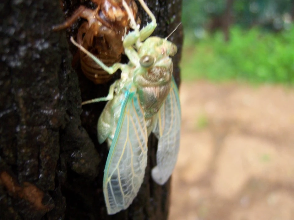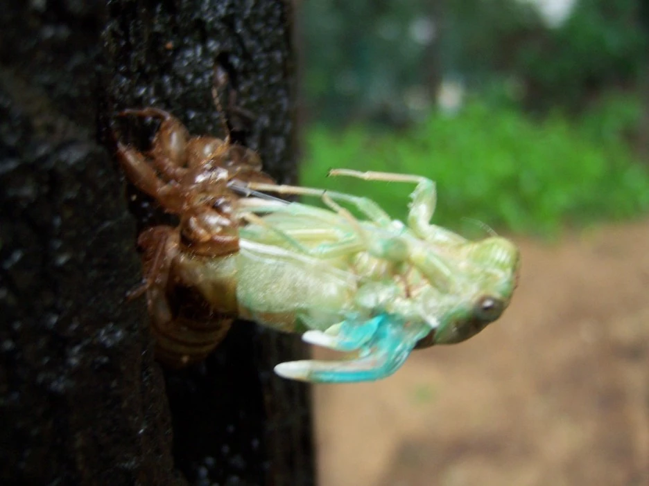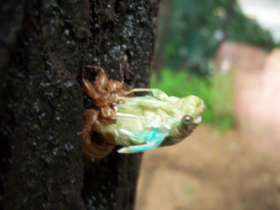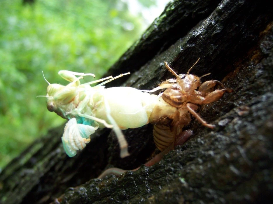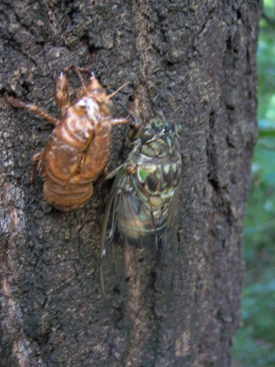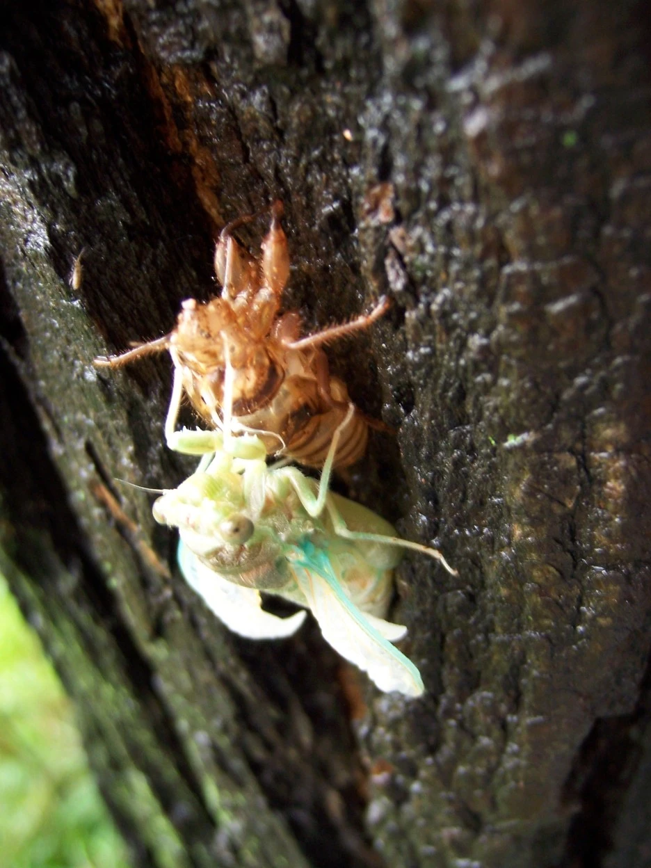 매미 껍질과 갓 태어난 매미