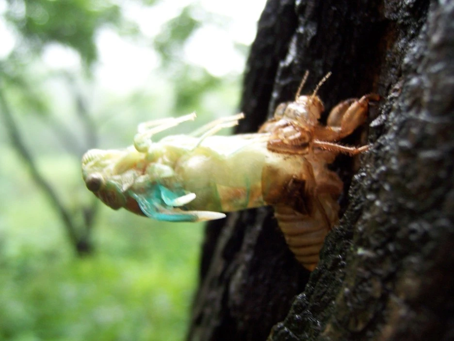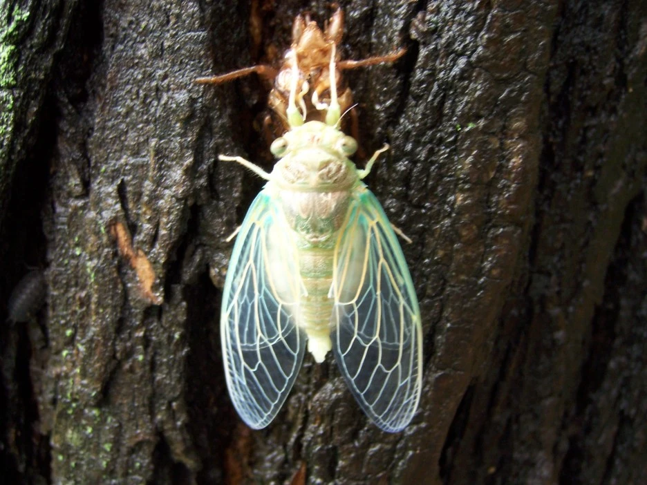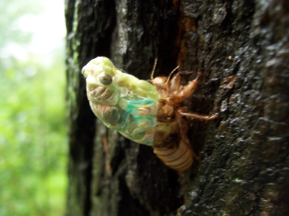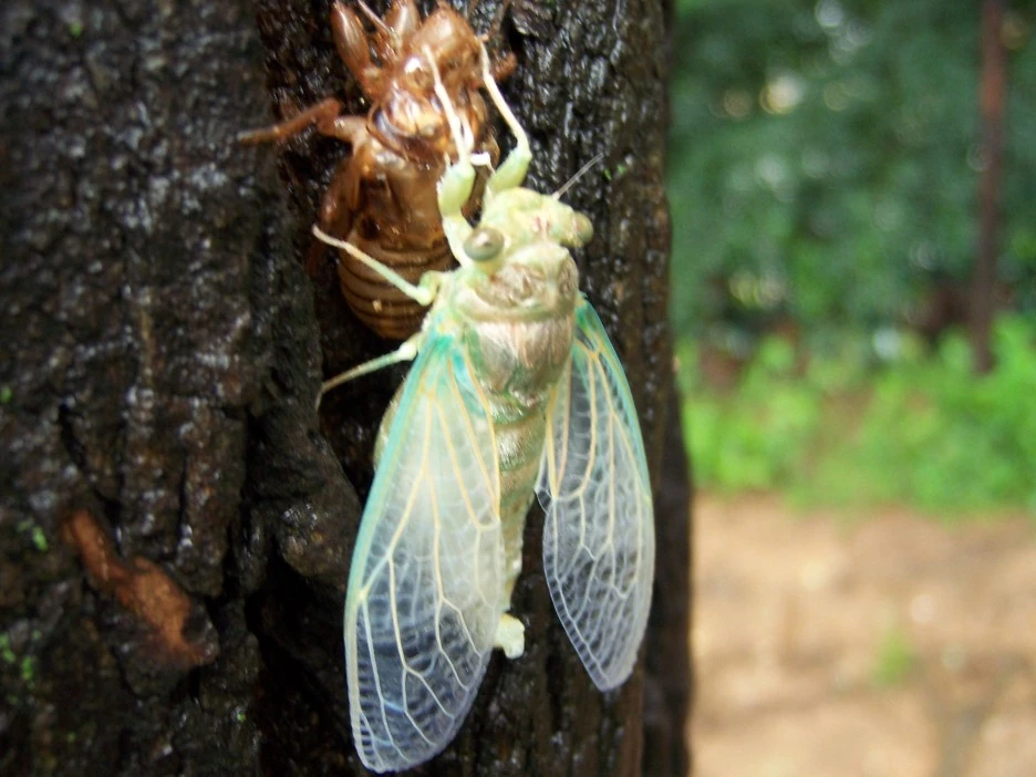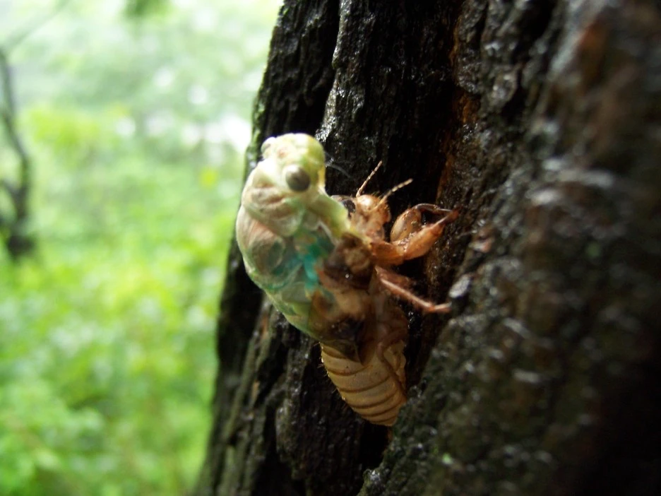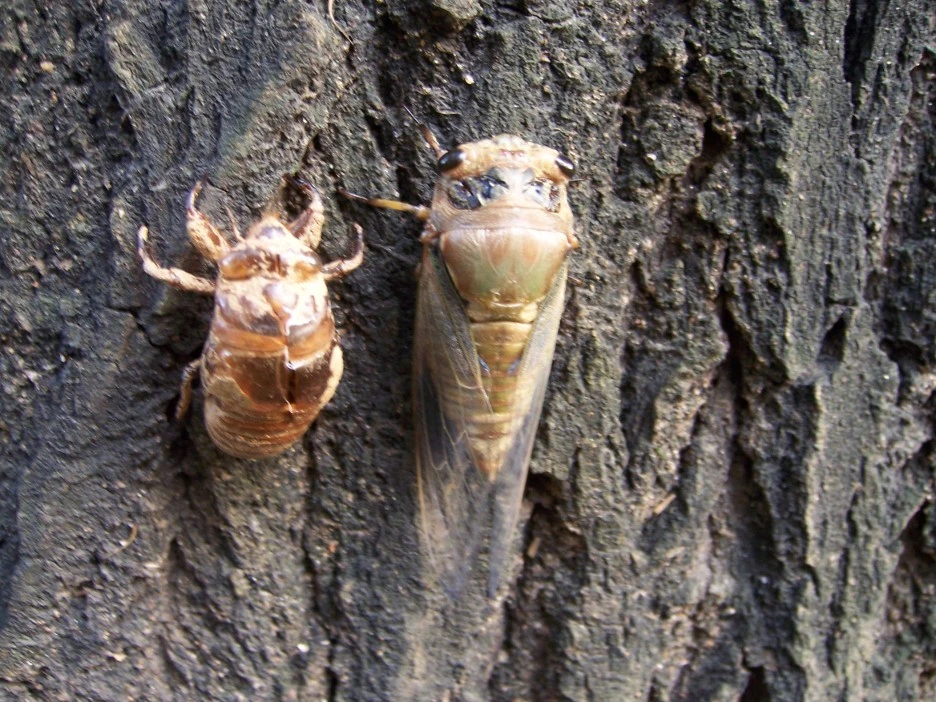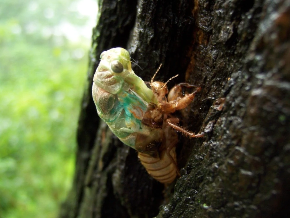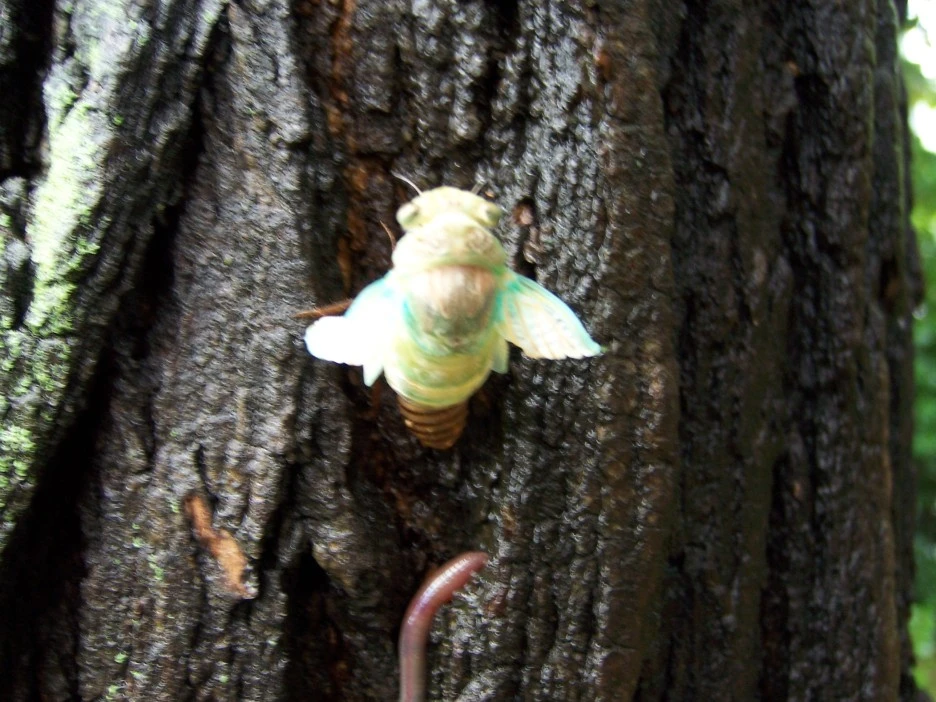 매미 껍질과 갓 태어난 매미