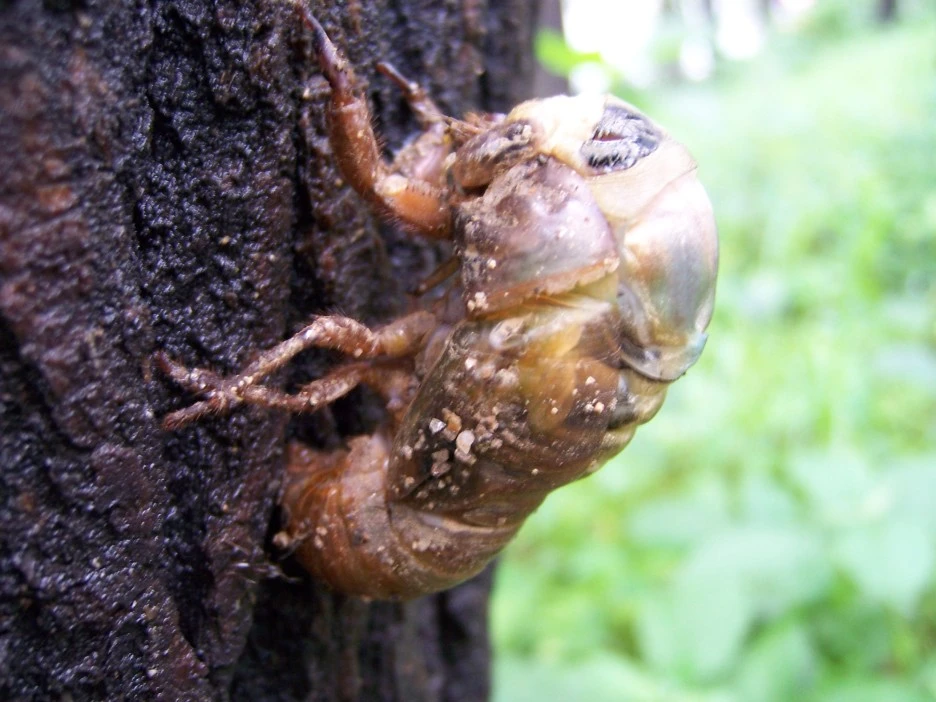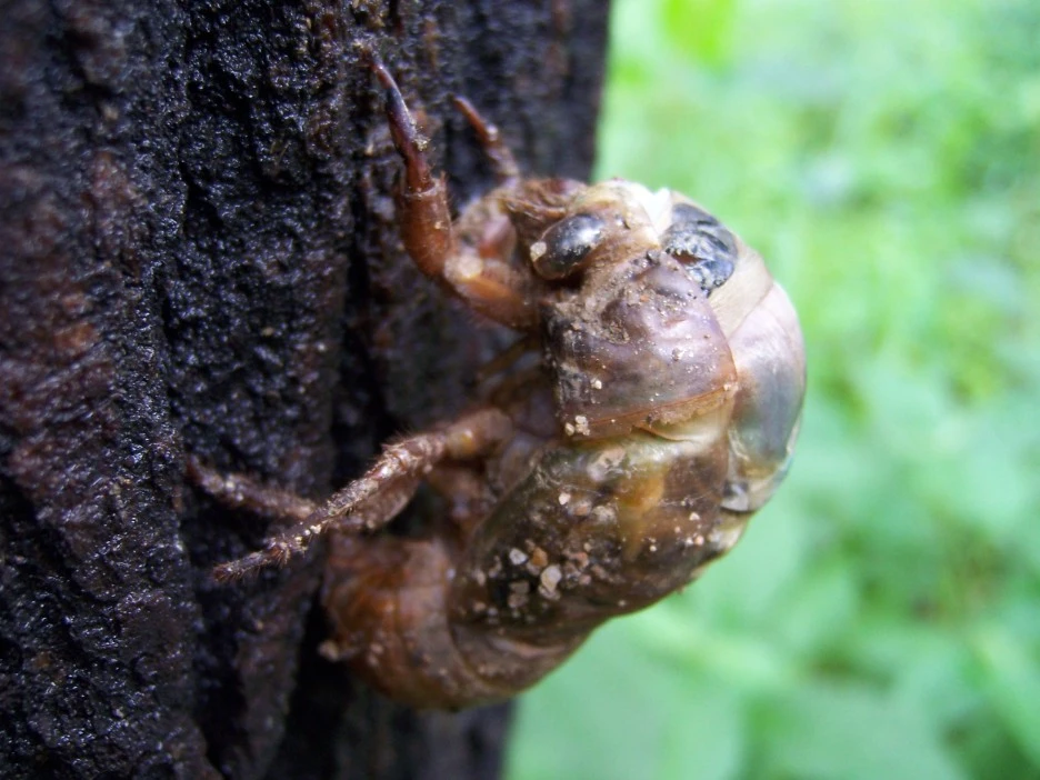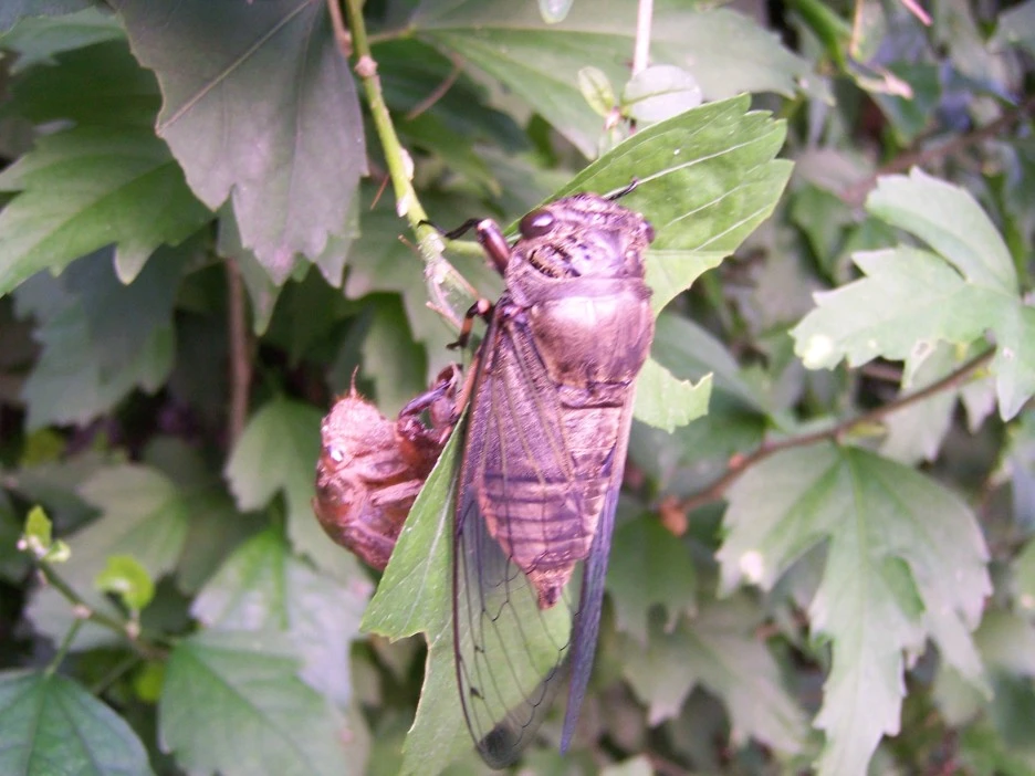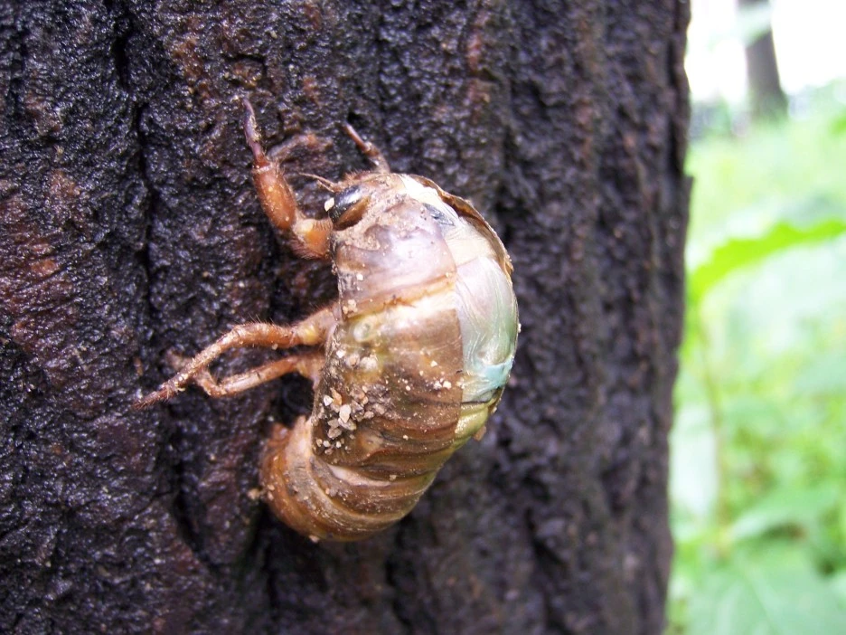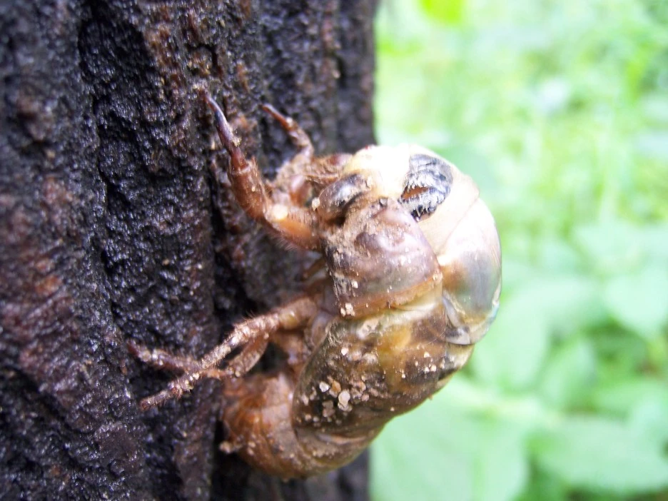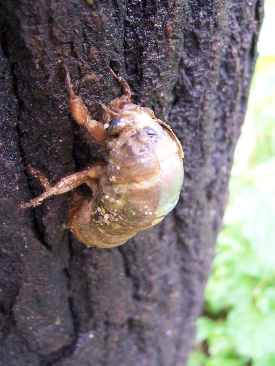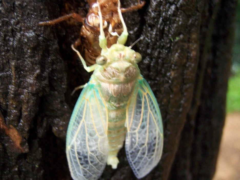 매미 껍질과 갓 태어난 매미