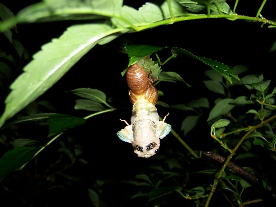 마침내 아기 매미의 모든 몸은 껍질에서 나와 독립된 개체가 되었다.