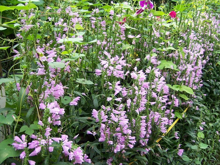 꽃범의 꼬리(학명 Physostegia virginiana)는 북아메리카 버지니아 지방이 원산지인 꿀풀과의 여러해살이풀입니다. 이름처럼 꽃차례가 범의 꼬리처럼 길게 뻗고, 꽃을 좌우로 움직이면 잠시 그 자리에 머물러 ‘Obedient plant(순종하는 식물)’이라는 이름도 있습니다.