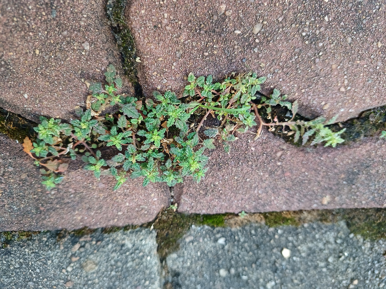 보도블록 틈새에서 겨우 5cm 남짓의 몸을 펼치며 살아가고 있지요.