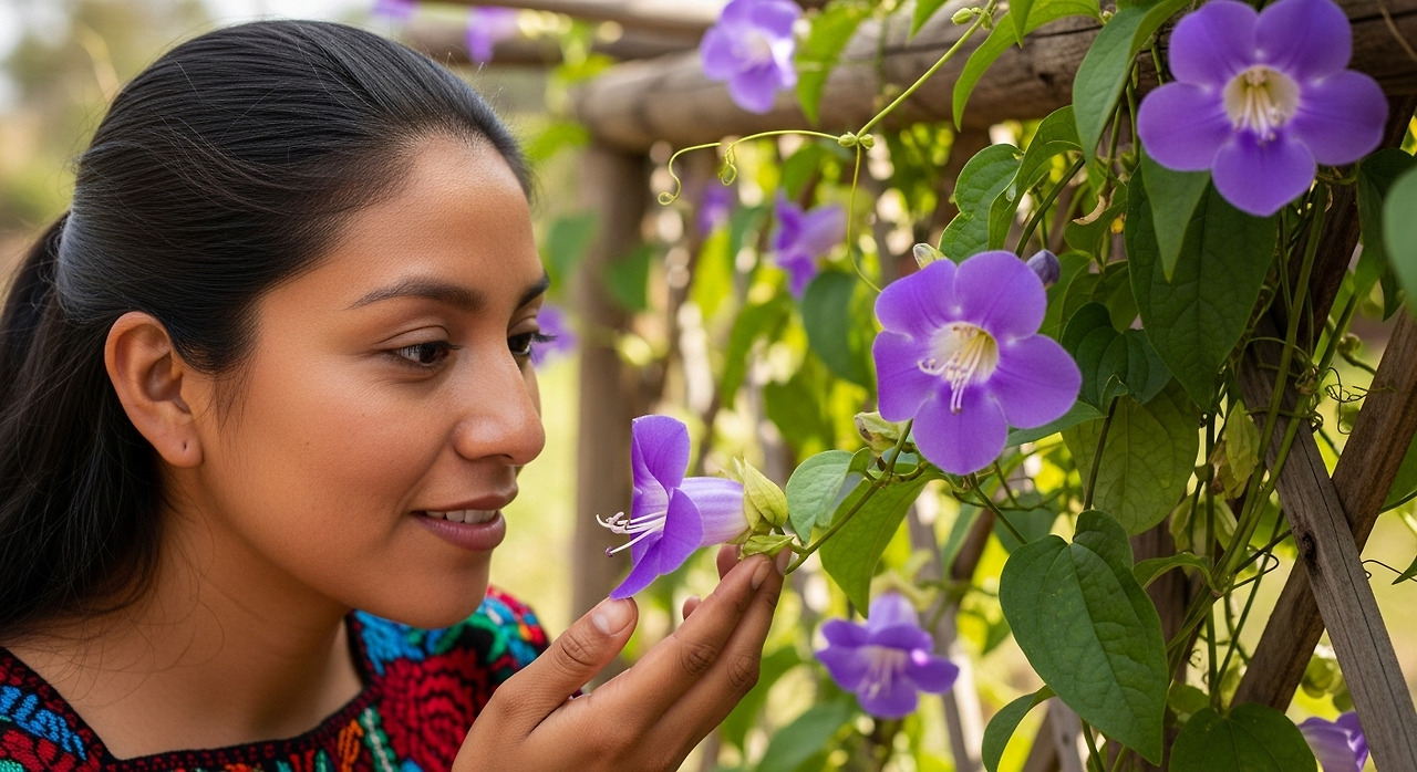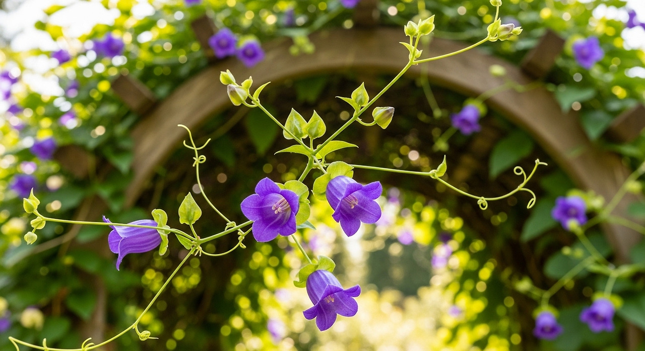 사람들은 저를 코바에아(Cobaea scandens)라고 부르지요. 멕시코가 고향인 덩굴성 식물인 저는, 담쟁이처럼 담이나 아치를 타고 오르며 여름부터 가을까지 커다란 종 모양의 꽃을 피워냅니다.