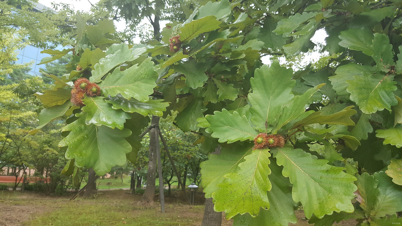 저의 학명은 'Quercus dentata', 즉 '톱니 모양의 잎을 가진 참나무'라는 뜻이에요. 제 이름처럼 큼직하고 톱니 모양의 잎은 옛날 사람들이 떡을 찔 때 시루 바닥에 깔아 썼다고 해서 '떡갈나무'라는 이름이 붙었답니다.