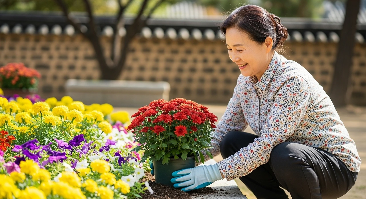 오늘은 그중에서도 특별히 빨강 국화가 주인공이래.