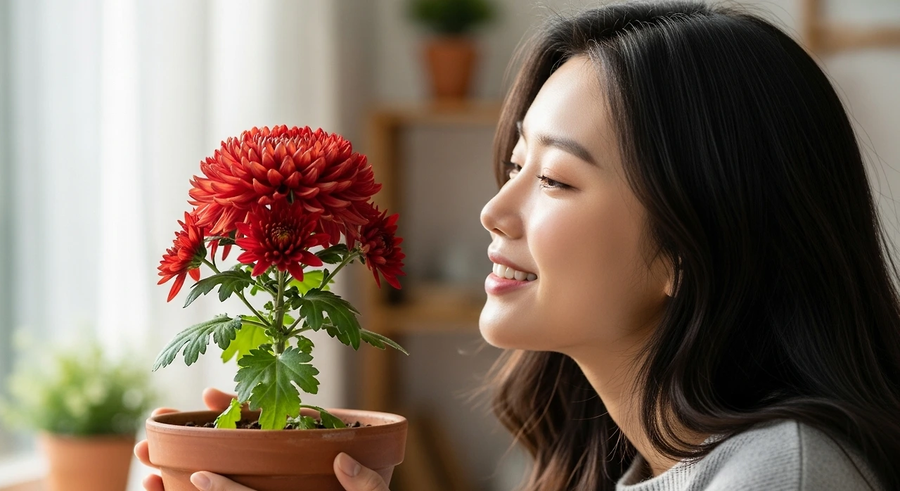 빨강 국화는 사랑, 진심 어린 마음을 담았어.