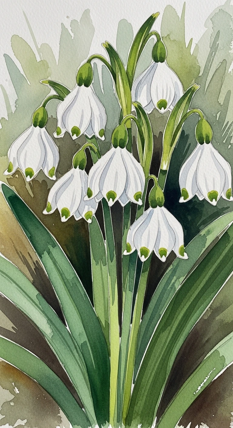 예술 속에서도 스노플레이크는 오래전부터 사랑받아 왔습니다. 17세기와 18세기 유럽의 식물학자들은 이 꽃을 정교한 채색 삽화로 남겼습니다. 하얀 꽃잎 끝의 초록 점 하나까지 세밀하게 그려 넣은 도감 속 스노플레이크는 과학과 예술의 경계에서 피어난 작은 명작이었습니다.