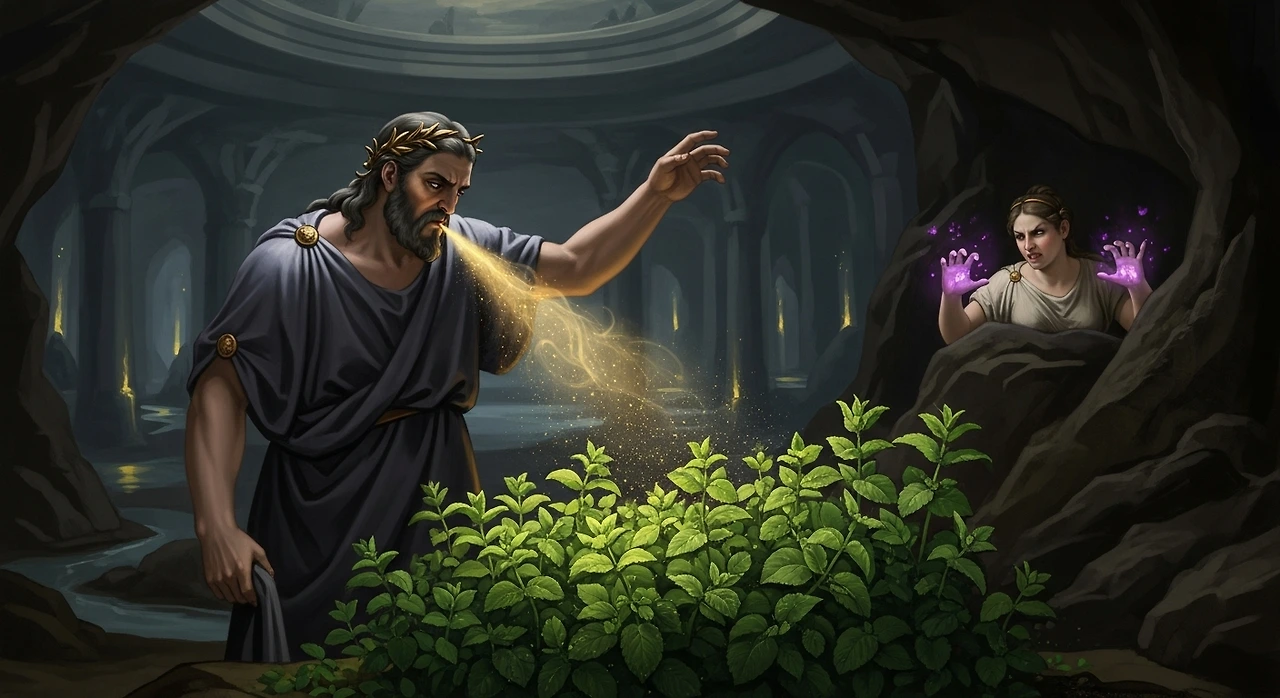 그러나 제게는 슬픈 전설이 있습니다. 그리스 신화에서 저는 한때 아름다운 요정 민테(Minthe)였다고 하지요. 지하세계의 신 하데스에게 사랑받았던 저는, 그의 아내 페르세포네의 질투를 받아 풀로 변해버렸습니다. 하지만 하데스는 저를 불쌍히 여겨 제 몸에 향기를 불어넣어 주었습니다. 그리하여 저는 죽음 대신 향기로 이 세상에 남게 되었습니다. 그 향기 속에는 아직도 누군가를 그리워하는 마음이 서려 있습니다.