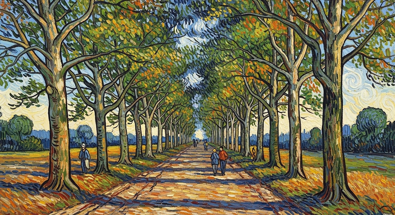 예술가들은 제 안에서 ‘시간’을 보았습니다. 빈센트 반 고흐는 프랑스 아를의 거리에서 저를 그렸습니다. 그림 「플라타너스 가로수길(Platanes)」 속에서 저는 금빛으로 물든 가을 하늘을 배경으로 서 있습니다. 고흐는 제 거대한 몸체와 빛의 그림자를 통해 인간보다 오래된 자연의 리듬을 표현했습니다.