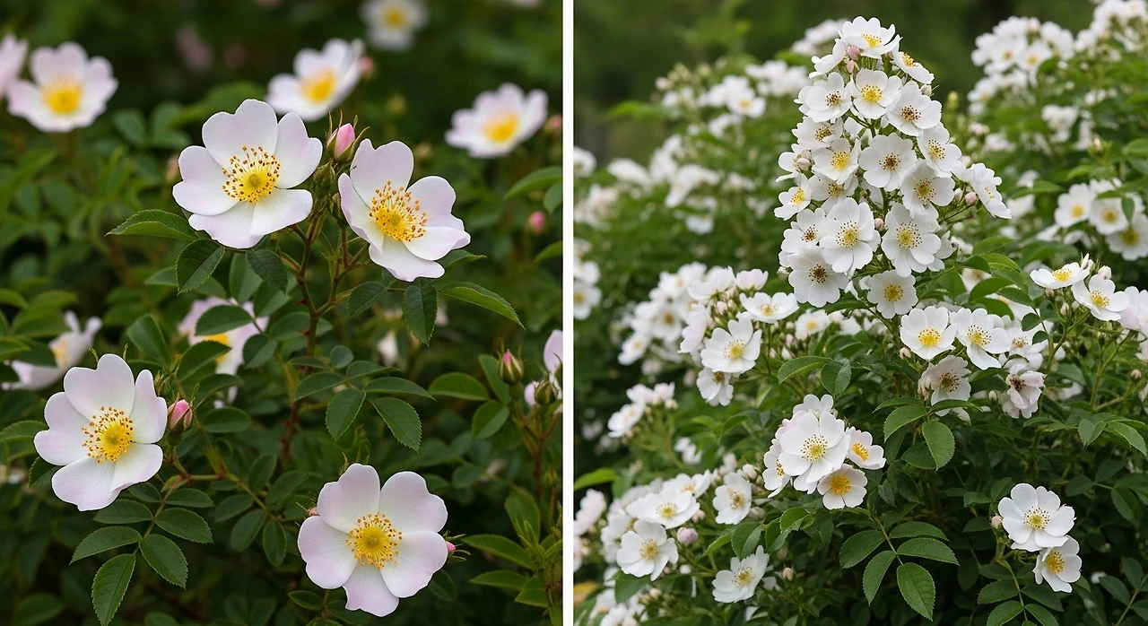 둘 다 순백의 꽃잎 다섯 장, 가시 있는 줄기, 그리고 달콤한 향기를 지녔다. 하지만 가까이 다가가면 미묘한 차이가 있다. 찔레꽃의 향기가 봄의 첫 아침공기처럼 맑고 산뜻하다면, 사향장미의 향은 여름 저녁의 공기처럼 부드럽고 묵직하다. 시간이 지나도 쉽게 사라지지 않고, 오히려 천천히 번져나가며 오래 남는다. 찔레꽃이 첫사랑의 향기라면, 사향장미는 이별 뒤에도 잊히지 않는 사랑의 향기다.
