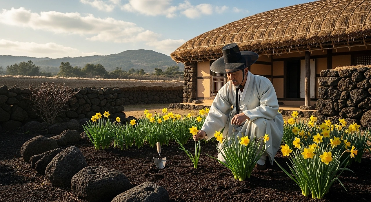 혹독한 유배의 겨울 속에서도 피어난 한 송이의 수선화처럼, 추사 김정희(秋史 金正喜) 선생의 삶은 고난을 예술로 승화시킨 인간의 숭고한 기록입니다. 그의 그림 《세한도(歲寒圖)》와 고택의 수선화는 그가 남긴 예술과 정신이 결코 시들지 않았음을 오늘도 말해줍니다.