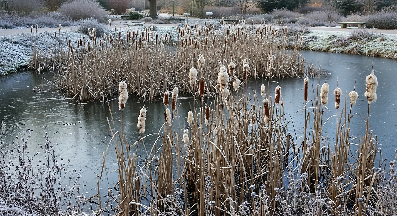 부들은 회화·사진·조형예술에서 고요와 정적의 상징으로 자주 등장합니다. 겨울 늪지의 황량함 속에서도 곧고 묵직한 실루엣을 유지하는 모습은 강렬한 선의 미학을 보여 줍니다.