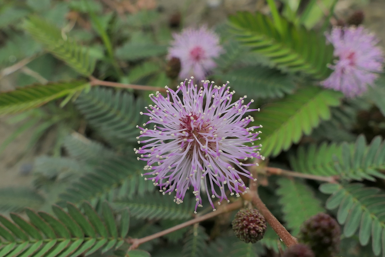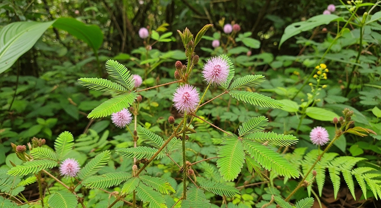 작은 분홍빛 둥근 꽃은 솜사탕처럼 가늘고 부드러우며, 향기가 은은해 곤충을 끌어들이는 데 효과적이다. 일본과 동남아에서는 ‘부끄럼풀’ ‘잠자는 풀’이라는 정감 있는 이름으로 불리며 대중적으로 사랑받고 있다.