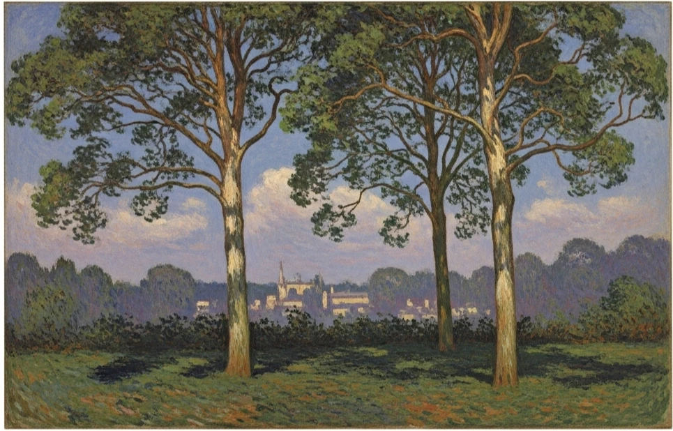 모네는 에프르 강변의 포플라를 계절과 시간대에 따라 연작으로 남기며, 빛과 바람이 만들어내는 변화를 섬세하게 포착했습니다.