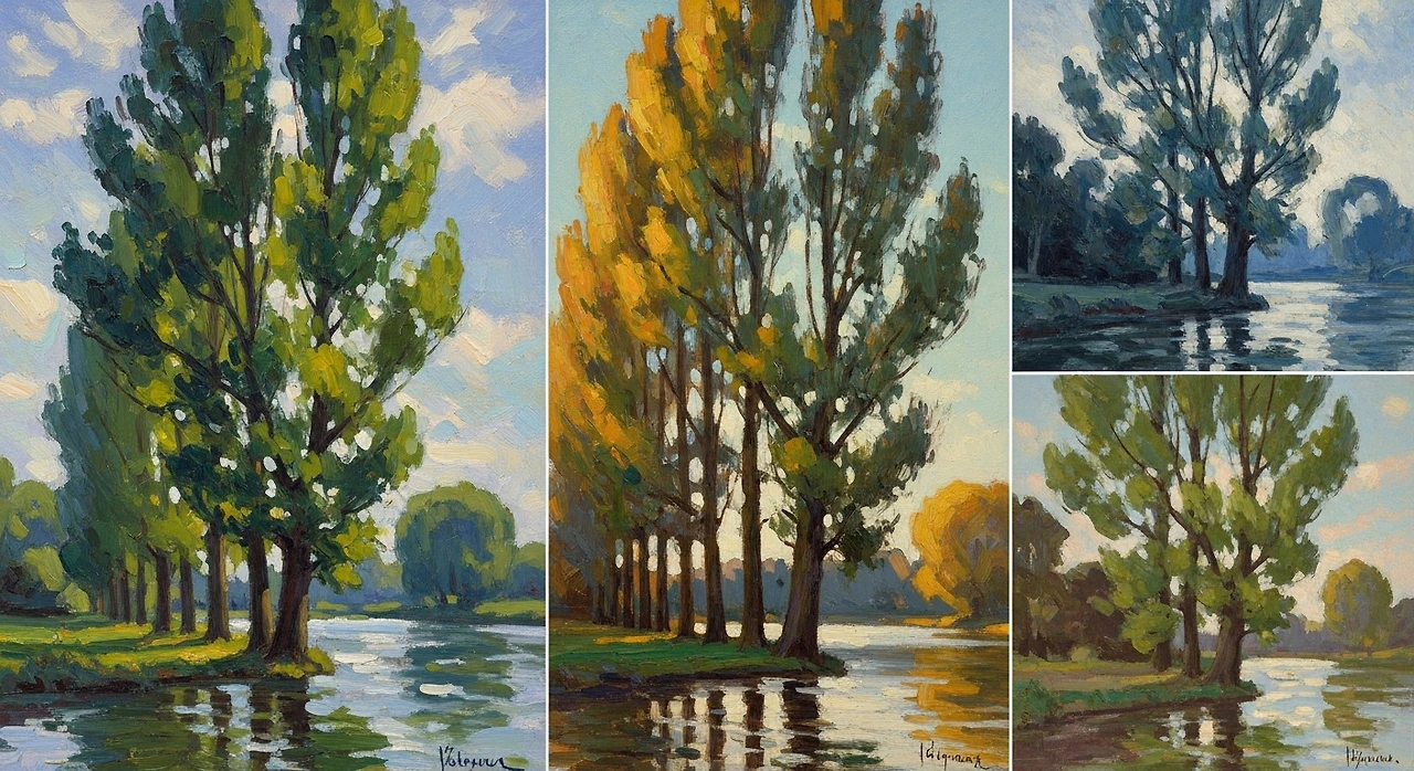 유럽 화가들은 강가에 서 있는 포플라의 세로선과 은빛 잎의 흔들림을 매력적인 소재로 여겼습니다.
