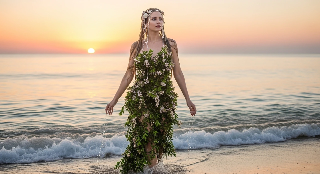바다에서 태어난 여신의 몸을 감싸던 잎사귀,