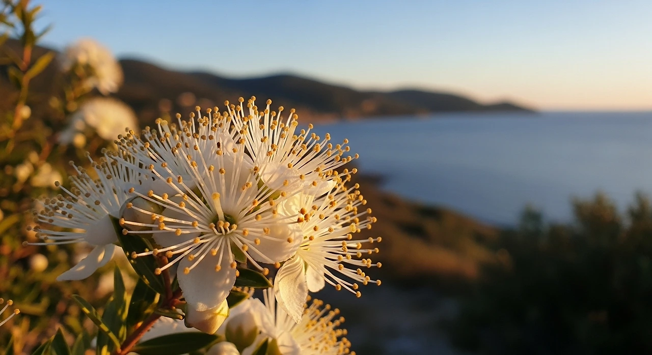 은매화는 도금양과(Myrtaceae)에 속하는 지중해 연안의 상록 활엽관목으로, 햇빛이 강한 해안과 건조한 언덕에서도 늘 푸른 잎을 간직합니다.