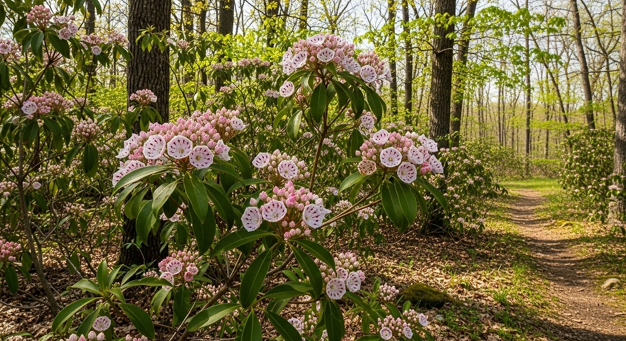 결국 코네티컷 주와 펜실베이니아 주의 주화(State Flower)로 지정될 만큼 지역의 정신을 대표하는 꽃이 되었고, 단단하고 결이 고운 목재는 ‘스푼 우드(Spoonwood)’라 불리며 숟가락과 작은 도구를 만드는 데 쓰였습니다. 겉모습은 부드럽지만 속은 단단한, 칼미아의 이중적 성질이 이곳저곳에서 빛을 발한 셈입니다.