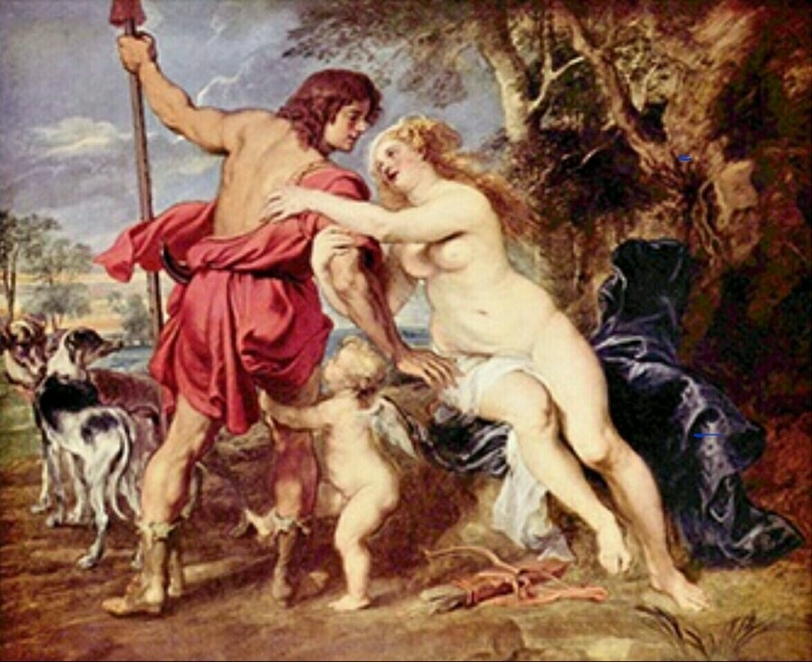 비너스의 애도, 피로 물든 대지, 그리고 다시 태어난 꽃. 이 이야기는 수많은 화가의 붓을 움직였습니다. 티치아노의 《비너스와 아도니스》,