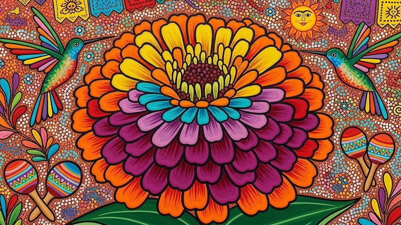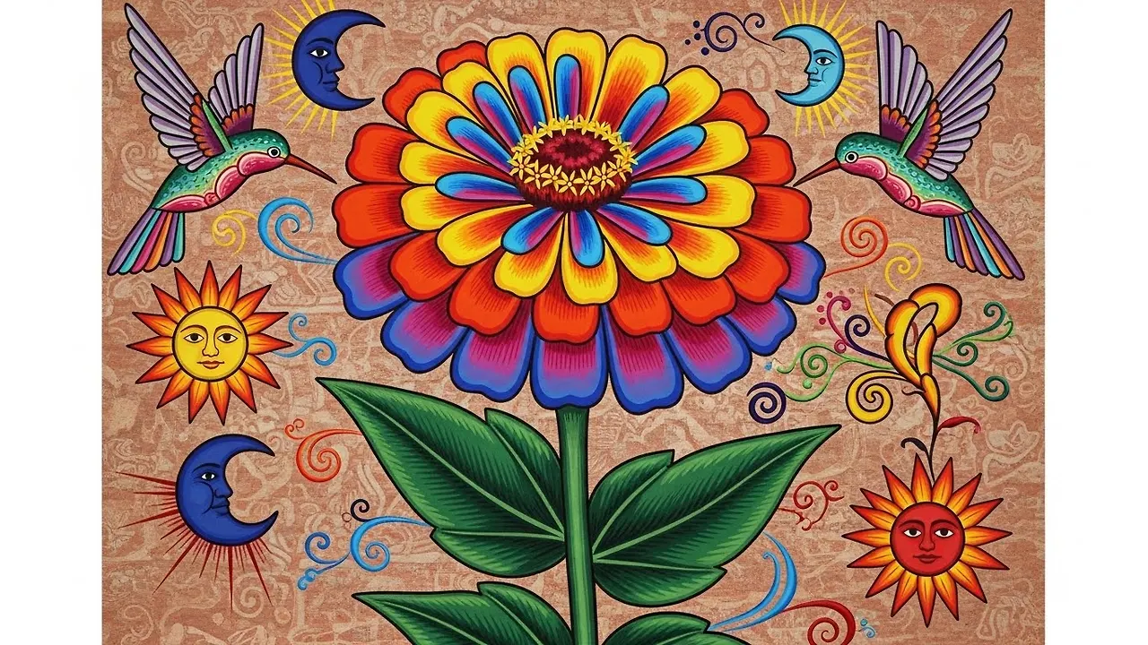 19세기 멕시코 민속화 전통에서는 진니아를 ‘영속성’과 ‘기억의 빛’을 상징하는 소재로 사용했으며, 여름의 뜨거운 생동감을 화폭에 담아내는 데 중요한 역할을 해왔습니다.