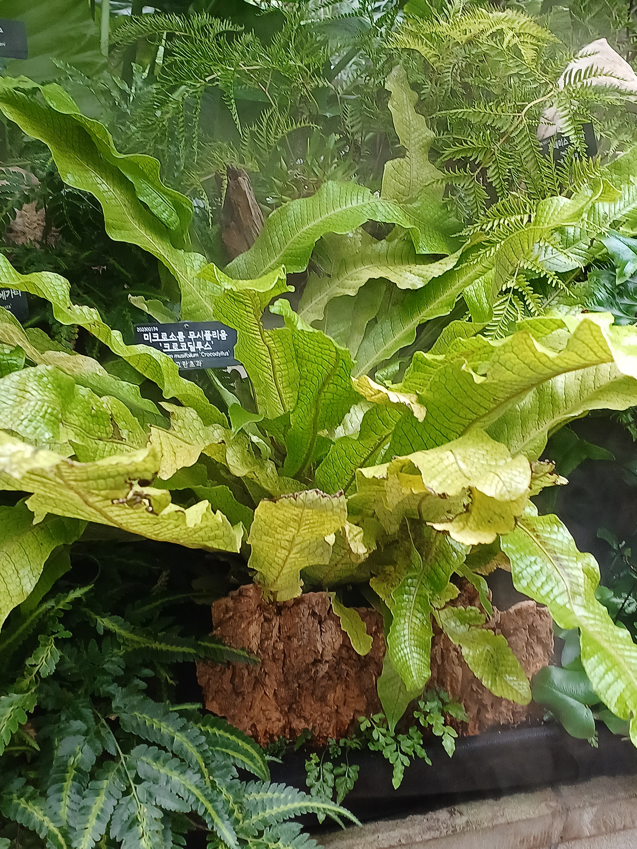 파초일엽이 한 장의 잎으로 기개와 단정함을 보여준다면, 미크로소룸 부쉬티움은 잎의 표면 전체로 생명의 질감을 드러낸다. 멀리서 보면 닮았지만, 가까이에서 보면 전혀 다른 성격의 식물이다. 그래서 이 고사리는 스쳐 지나가듯 보기보다는, 멈춰 서서 들여다볼 때 비로소 진가를 드러낸다.