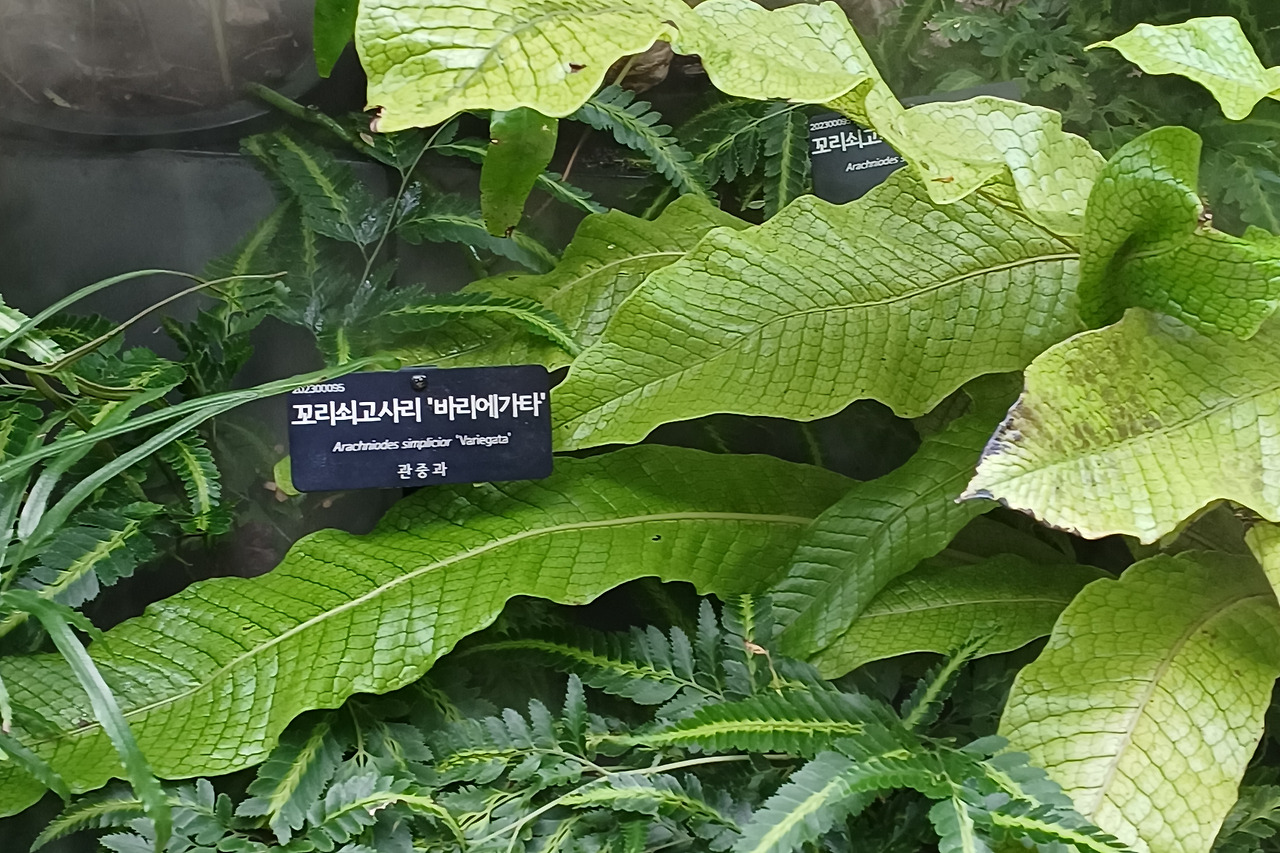 식물원 온실에서 파초일엽을 떠올리게 하는 고사리를 만났다. 넓게 펼쳐진 잎, 위로 곧게 솟은 기세까지 닮았는데, 이상하게도 가까이 다가가자 전혀 다른 인상을 남겼다. 잎의 표면이 매끈하지 않았다. 빛을 받는 방향마다 요철이 생기고, 잎맥은 도드라져 마치 살아 있는 피부처럼 보였다. 그 순간 이 고사리는 더 이상 파초일엽이 아니었다. 악어의 가죽을 닮은 잎을 가진, 미크로소룸 부쉬티움이었다.