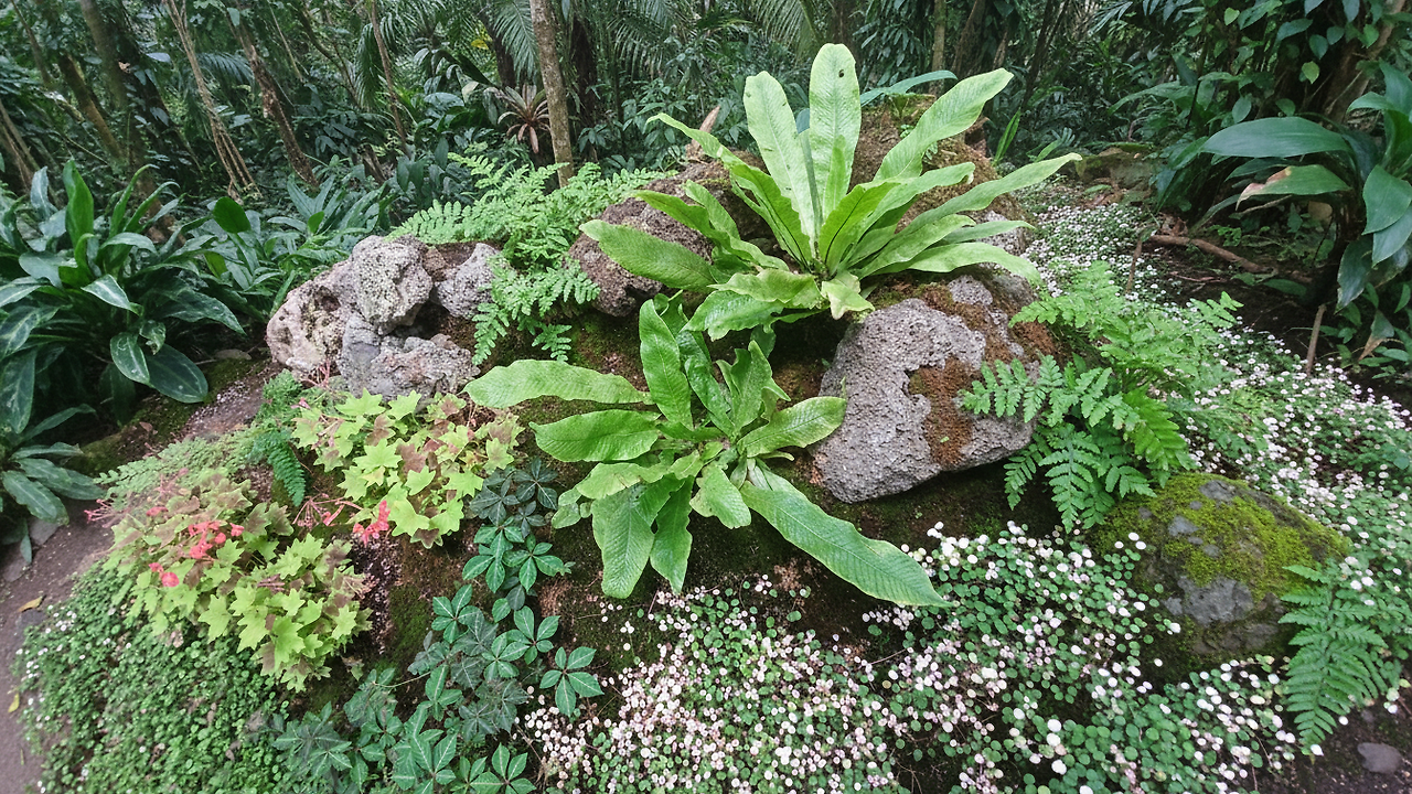이 식물의 주인공은 단연 잎이다. 잎맥이 솟아 만들어낸 격자 무늬는 빛에 따라 명암을 바꾸며, 평면이 아닌 입체로 존재한다. 잎 가장자리는 완만하게 물결치듯 굽이치고, 그 굴곡 사이로 열대 숲의 습기와 시간이 스며든다. 꽃이 피지 않아도, 이 고사리는 이미 충분히 많은 이야기를 품고 있다.