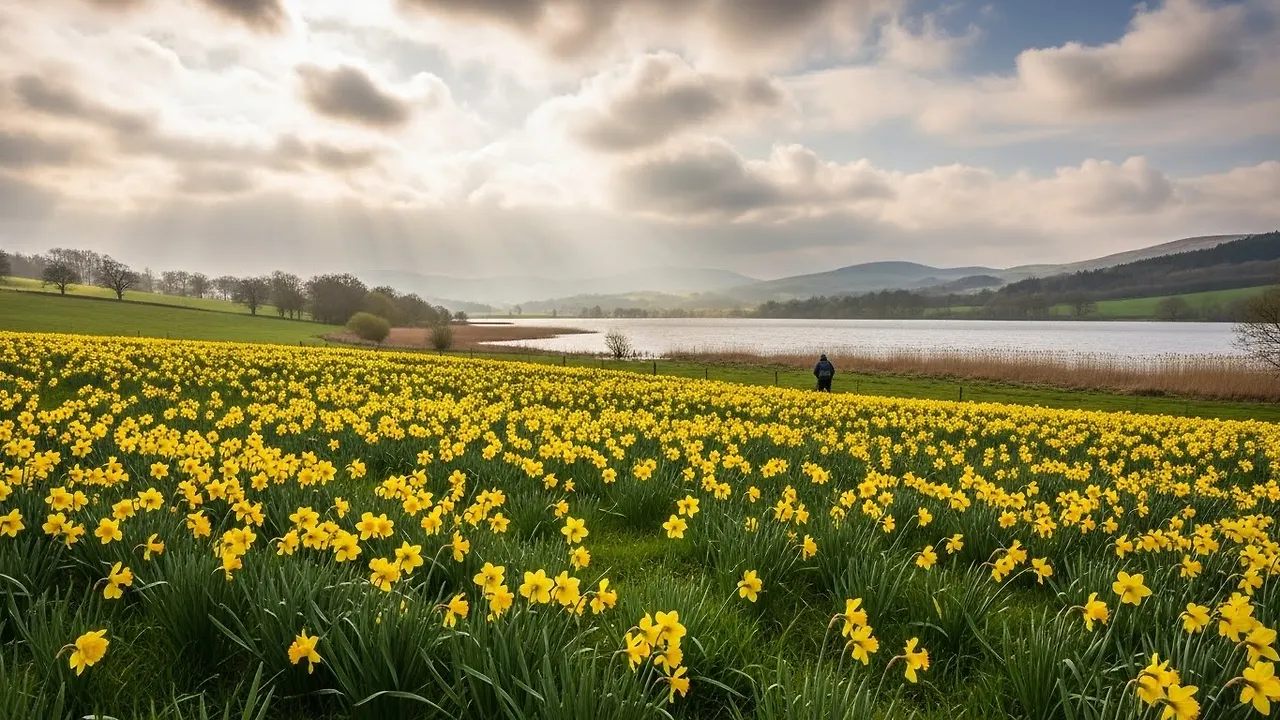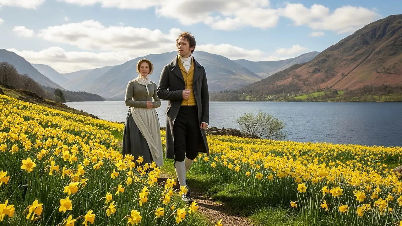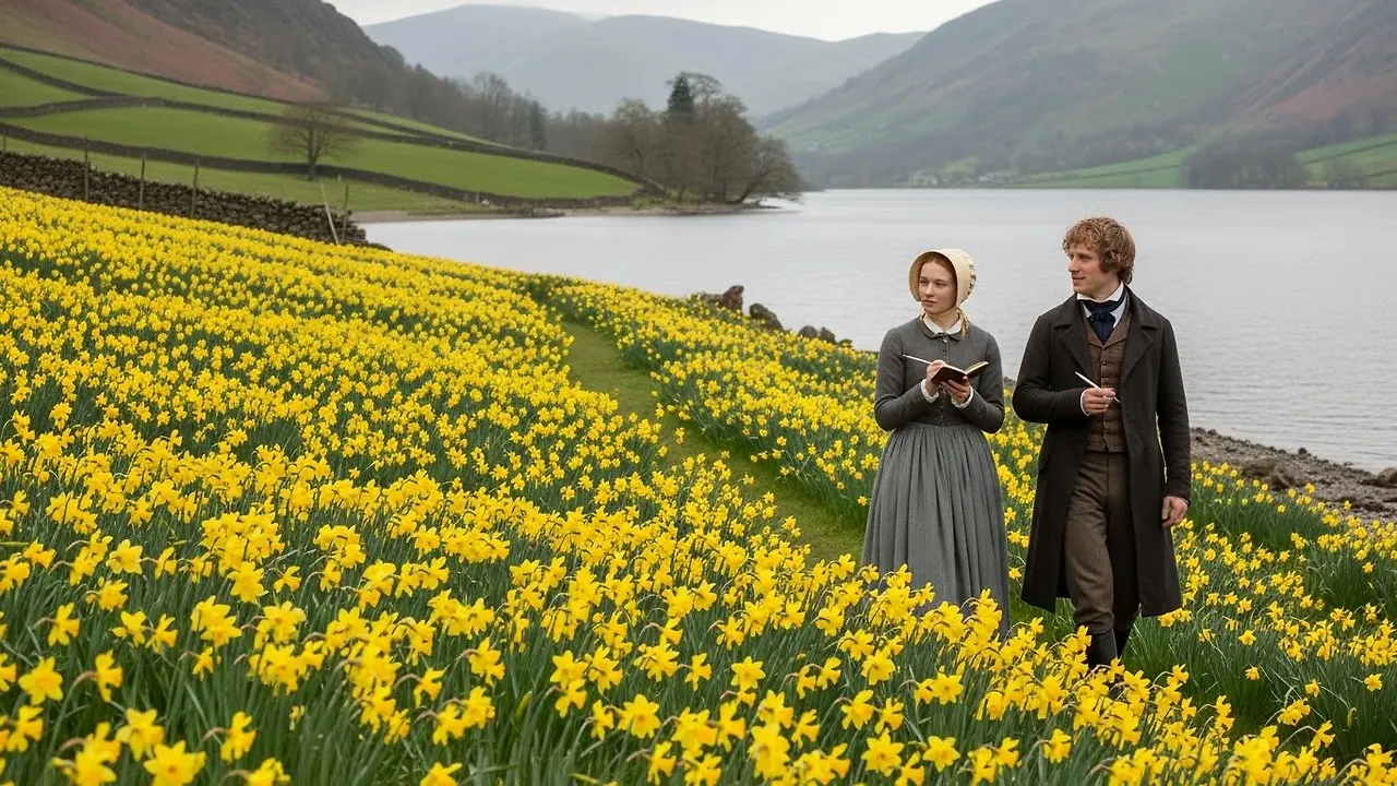 1802년 봄, 워즈워스는 여동생 도로시와 함께 잉글랜드 레이크 디스트릭트(Lake District)를 산책하고 있었습니다. 바람이 부는 호숫가, 언덕 아래 펼쳐진 들판에 수천 송이의 노랑수선화가 물결처럼 흔들리고 있었고, 그 장면을 본 순간의 감동을 도로시는 일기에 남겼습니다.