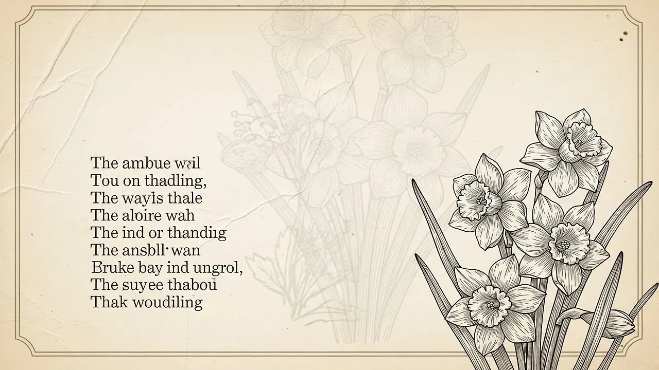 이 마지막 연이 이 시를 위대한 작품으로 만듭니다. 수선화는 이미 사라진 풍경이지만, 기억 속에서 언제든 다시 피어납니다. 자연은 순간의 감동이 아니라, 인간 내면에 저장되는 치유의 이미지로 남는 것입니다.