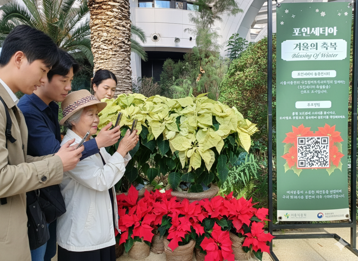 수입 품종에 익숙해진 눈으로 바라보는 국산 포인세티아는, 어쩐지 더 가까운 언어로 말을 걸어오는 듯한 인상을 주었습니다. 색도, 형태도, 생육의 리듬도 우리 계절에 맞춰 다듬어진 이 식물들은 겨울의 풍경 속에 자연스럽게 스며들고 있었습니다.