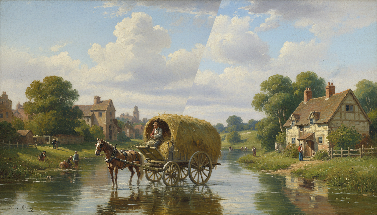 존 컨스터블의 〈건초 수레 The Hay Wain〉와 〈옥수수밭 The Cornfield〉 속 떡갈나무는 영웅적 상징이 아니라 삶의 배경입니다. 농부의 일상과 계절의 흐름을 묵묵히 지켜보는 나무는 조용한 보호자처럼 그 자리를 지킵니다.