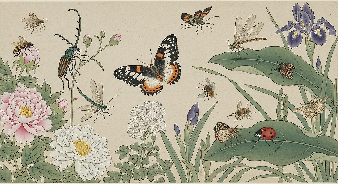 쥐꼬리망초가 특정 명화의 주인공으로 크게 등장한 예는 많지 않습니다. 그러나 한국과 동아시아의 민화(民畵)와 초충도(草蟲圖) 전통 속에는 이름 없는 들풀과 작은 벌레들이 자주 그려졌습니다. 화려한 모란이나 연꽃이 아니라, 들판의 풀과 곤충을 그려 넣는 태도는 ‘낮은 것의 미학’을 보여줍니다.