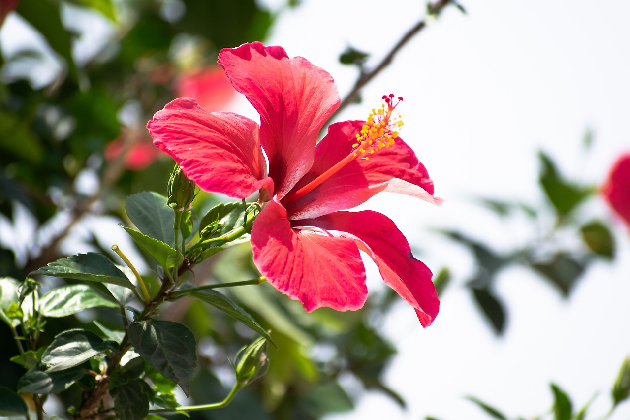 하와이 무궁화라 불리는 Hibiscus rosa-sinensis, 한글로 읽으면 히비스커스 로사 시넨시스는 열대의 태양 아래에서 자라는 화려한 종입니다. 커다란 꽃잎, 강렬한 적색과 주황, 노랑의 스펙트럼. 이 꽃은 나무라기보다 관목의 형태로 자라며 사계절 내내 꽃을 피웁니다.