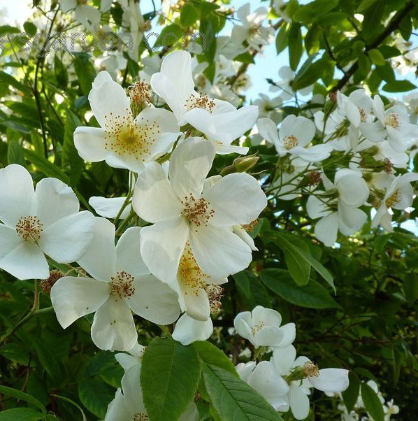 사향장미는 이란 남부에서 아프가니스탄에 이르는 지역을 기원으로 하는 관목성 장미입니다. 높이 약 3미터까지 자라며, 곧거나 약간 굽은 가시를 지닙니다. 잎은 연녹색에서 회녹색을 띠고 5~7개의 소엽이 모여 달립니다. 지름 약 5센티미터 안팎의 흰 꽃이 다발로 피어, 정원에서는 한 덩어리의 빛처럼 보이기도 합니다.