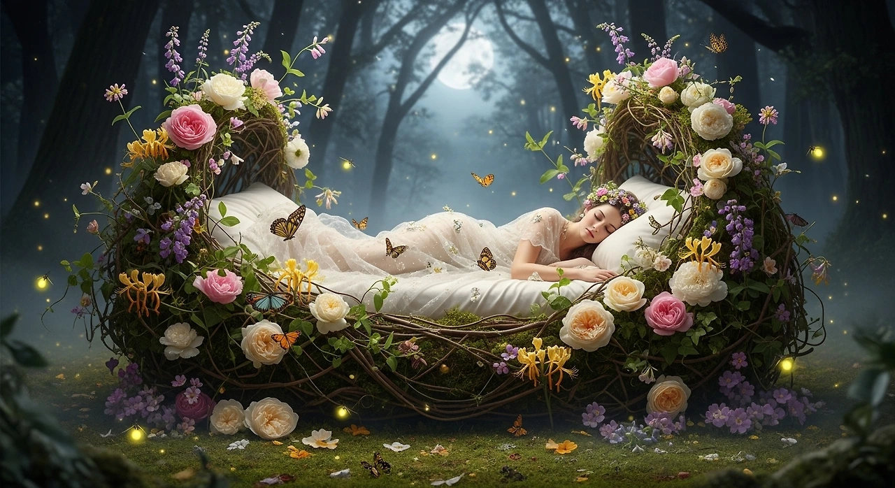 요정의 장난에 이끌려 사랑에 빠지는 인간들. 사랑은 늘 이성보다 향기에 가깝습니다. 눈으로 본 것이 아니라, 설명할 수 없는 기운에 이끌려 마음이 흔들리는 순간. 사향장미는 그런 사랑의 비유처럼 서 있습니다. 은은하지만 결정적인, 부드럽지만 깊이 스며드는 존재로.