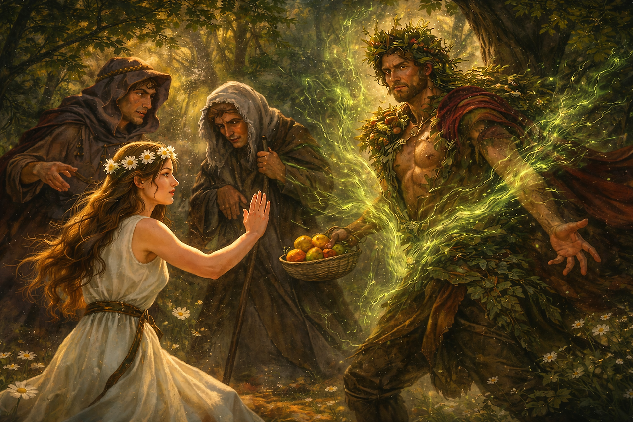 숲과 들판을 자유롭게 거닐던 요정 베리디스는 이미 마음에 둔 사랑이 있었습니다. 어느 날, 계절과 변화의 신 베르툼누스가 그녀를 보고 첫눈에 반합니다. 그는 봄의 청년, 농부, 노파 등 여러 모습으로 변신하며 그녀에게 다가가지만, 베리디스의 마음은 흔들리지 않습니다.