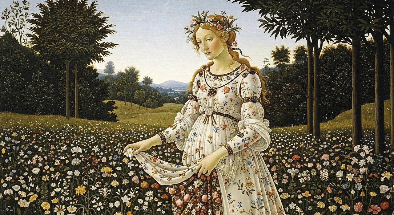 르네상스의 화가 Sandro Botticelli의 《Primavera》 속 봄의 여신 주변에도 들꽃들이 흩어져 있습니다. 그중 작은 흰 꽃들은 순결과 새로운 시작을 암시하는 장치로 해석됩니다. 화폭 속 들꽃들은 화려한 신화의 장면을 한층 인간적으로 만들지요.
