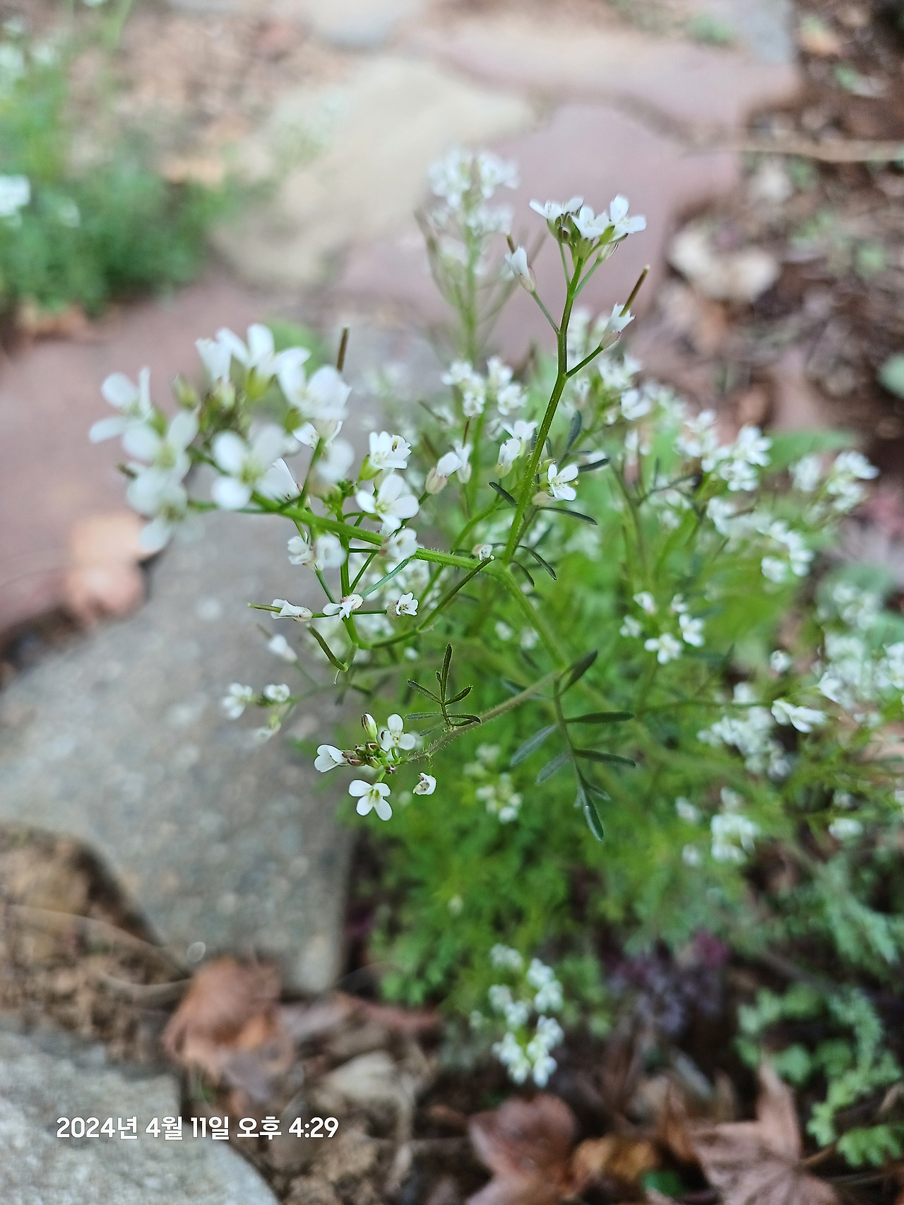 꽃잎 네 장이 교차하듯 펼쳐진 단정한 형태는 소박하지만 맑습니다. 잎은 깃꼴로 갈라지고, 습한 논밭이나 개울가, 물기 어린 땅에서 잘 자랍니다. 추위에도 강해 이른 봄부터 하얀 꽃망울을 터뜨립니다.